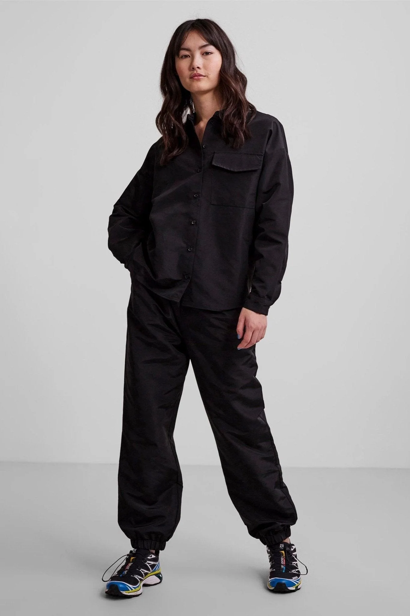 Camisa larga fácil – Negro