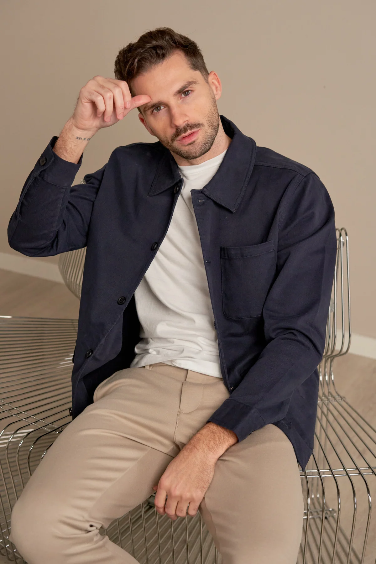 Chaqueta de camisa de sarga – arena oscura