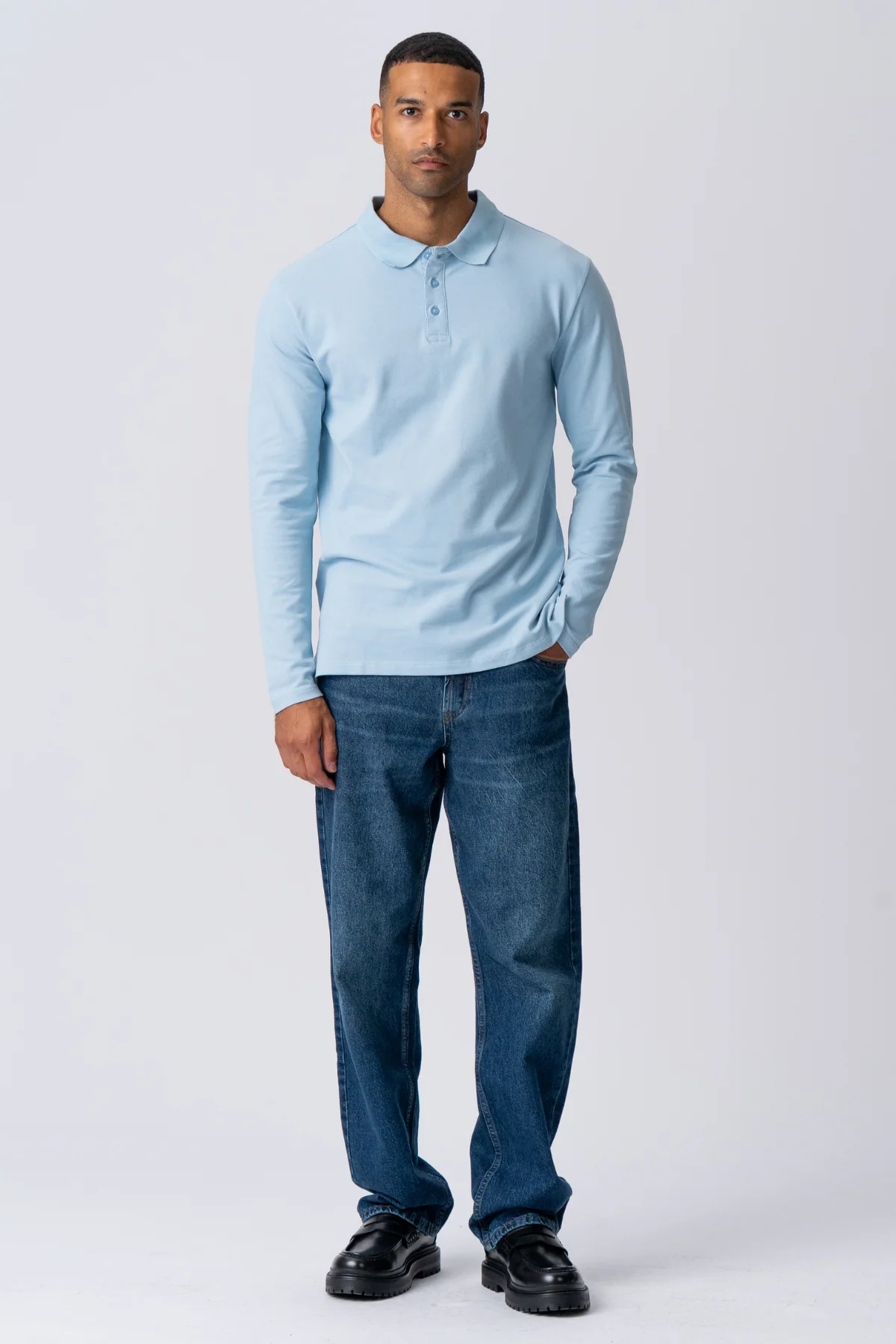 Polo de manga larga muscular – azul claro