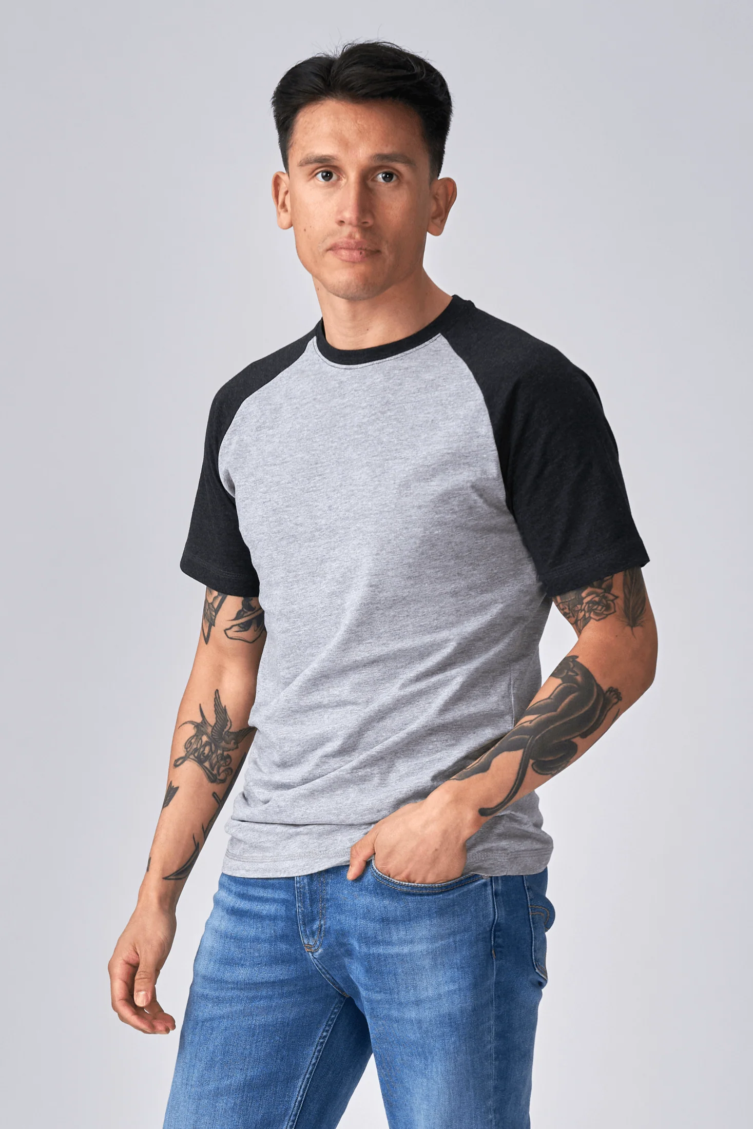 Camiseta básica de Raglan-gris negro-luz