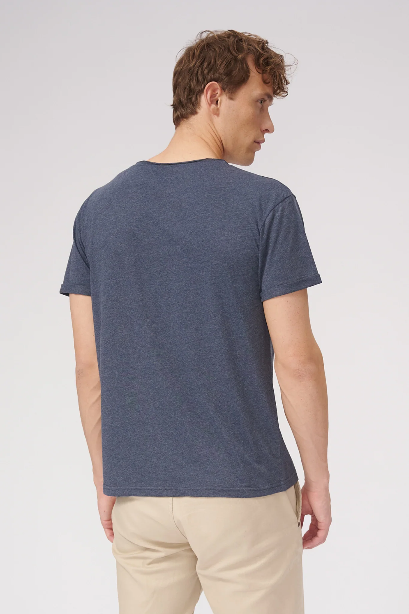 Camiseta con cuello profundo – Azul Jaspeado