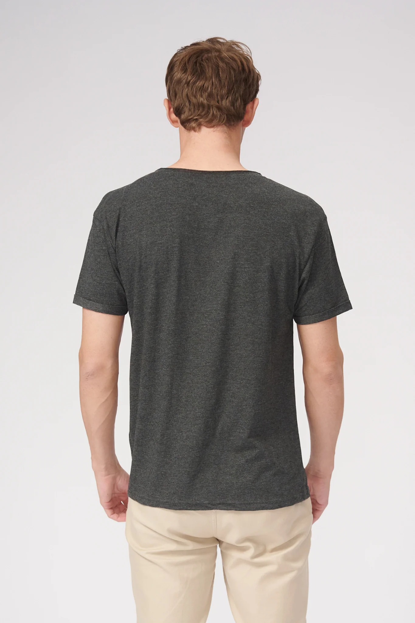 Camiseta con cuello profundo – Gris oscuro