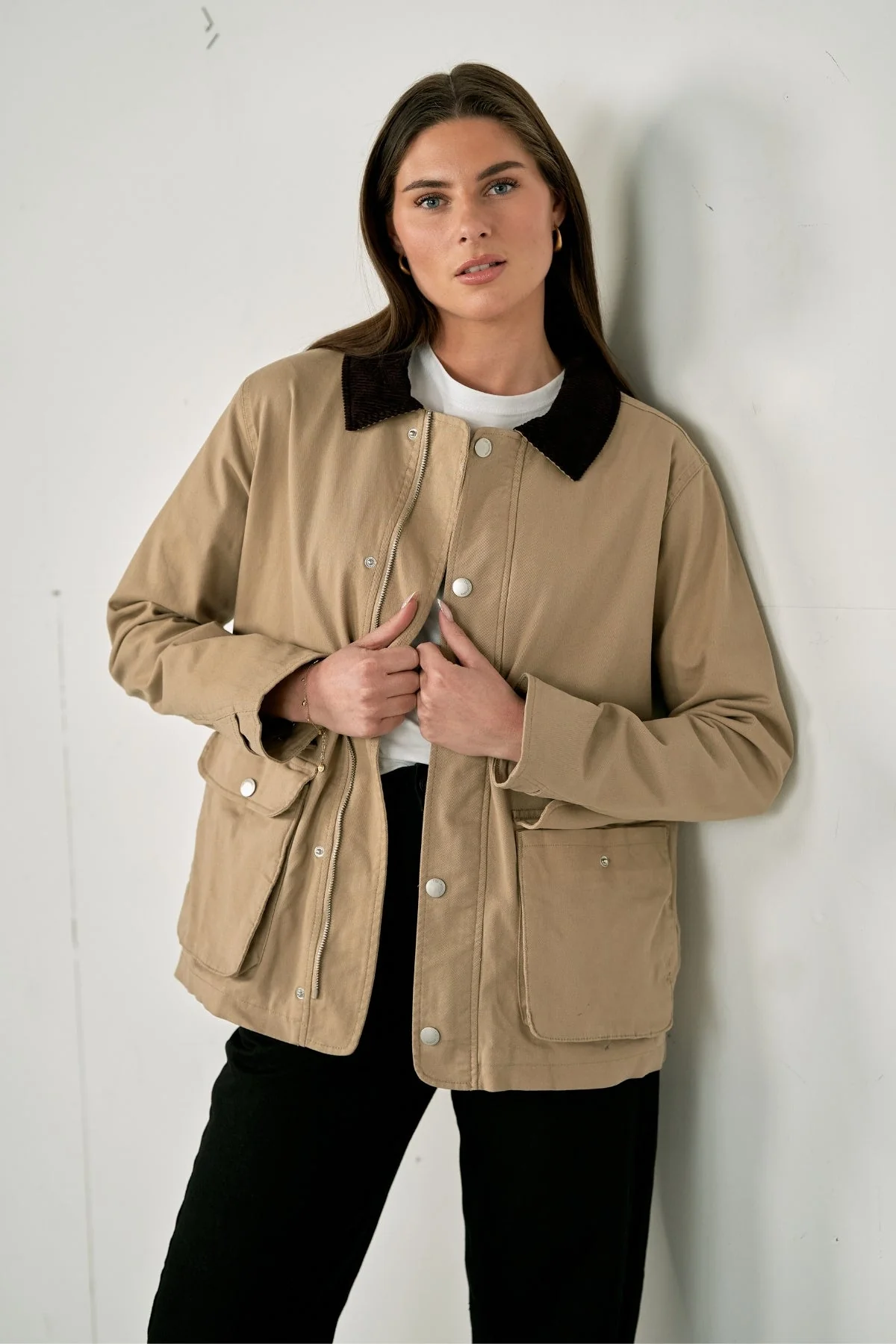 Chaqueta de piel de ojo de Daisy – marrón/negro