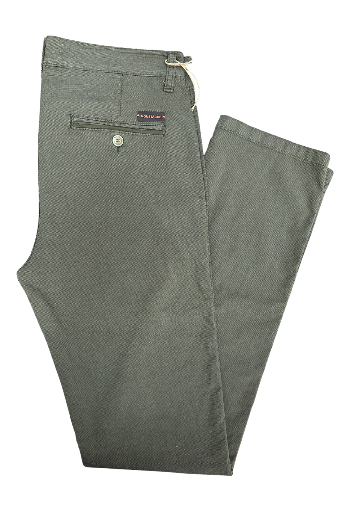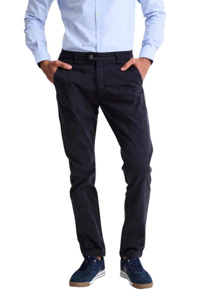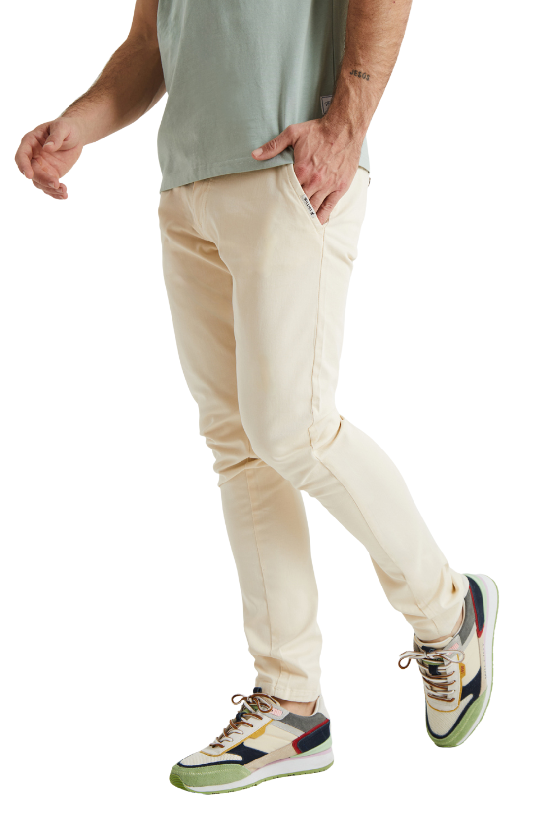 Pantalón de elastano, corte chino, bolsillo lateral delanteros , bolsillo relojero y trasero recto.