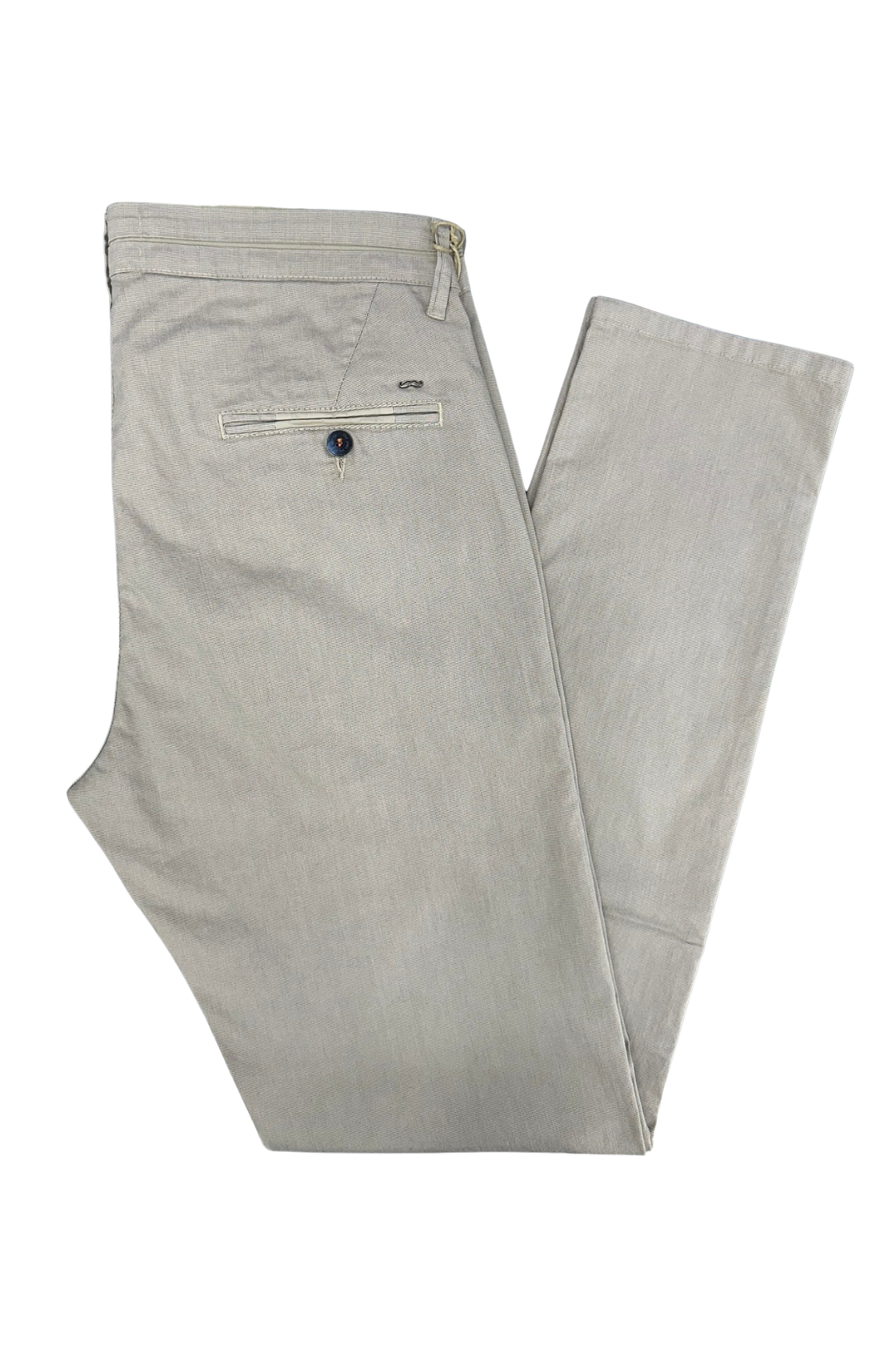 Pantalón de algodón Montizon Altea piedra, corte chino bolsillo lateral delanteros y bolsillo recto en parte trasera con vivo liso y botón.