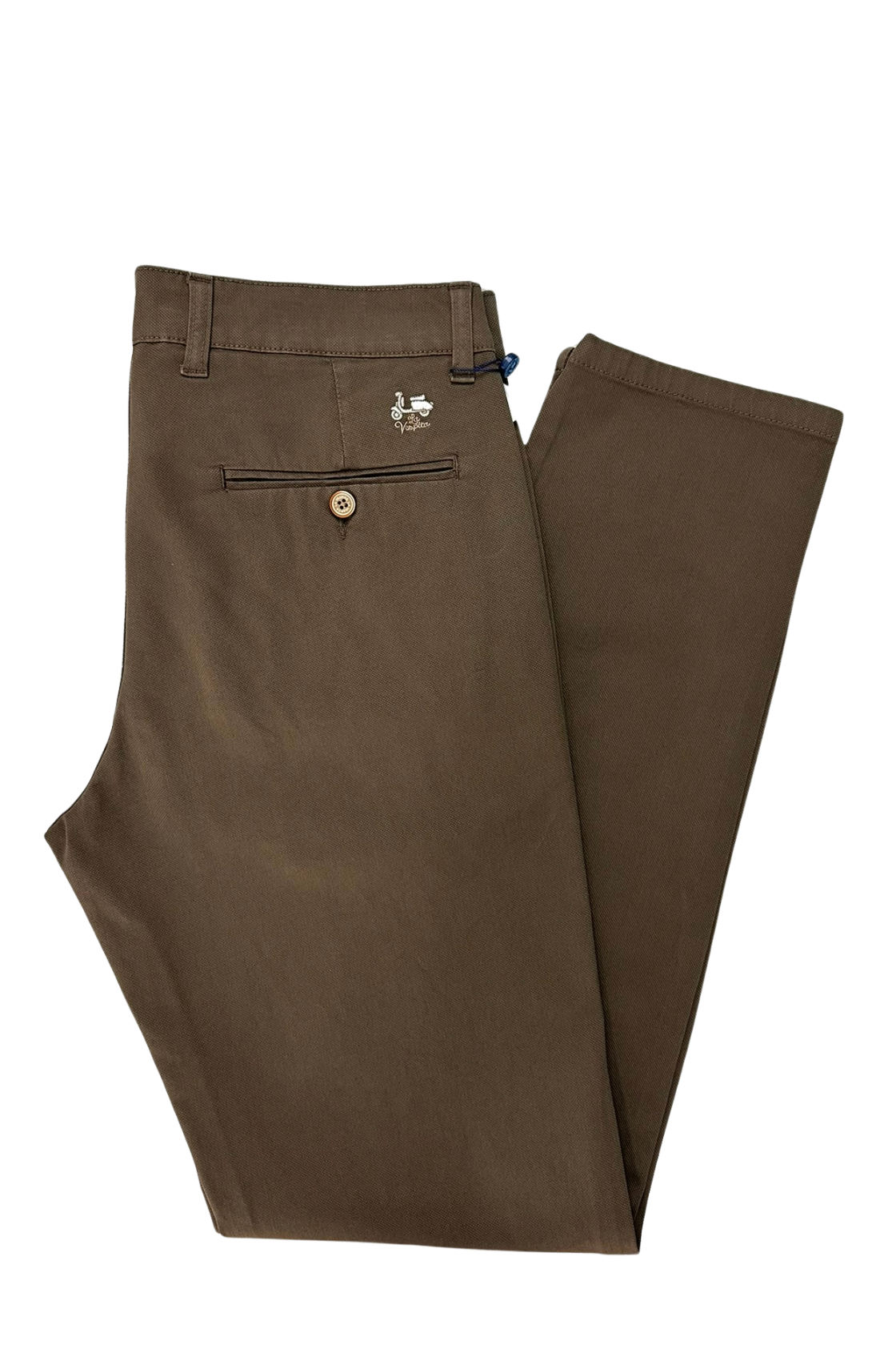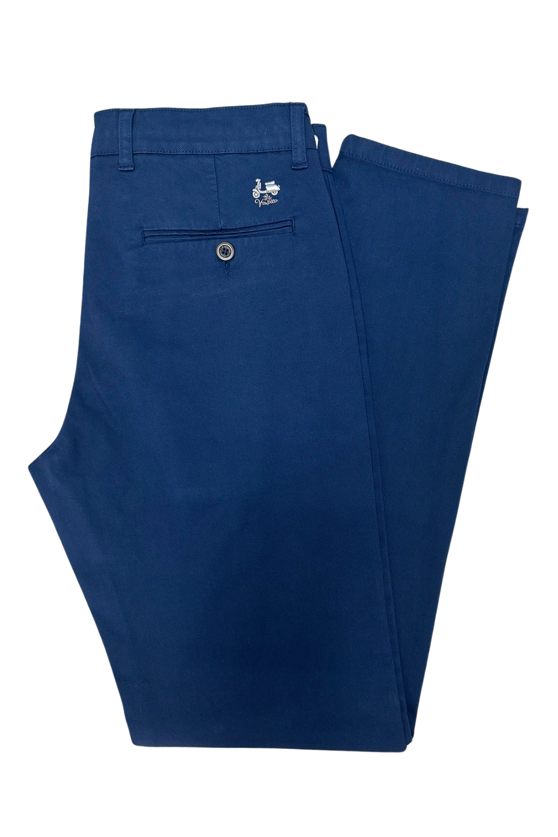 Pantalón de algodón La Vespita, corte chino bolsillo lateral delanteros y bolsillo recto en parte trasera con vivo a tono y botón.