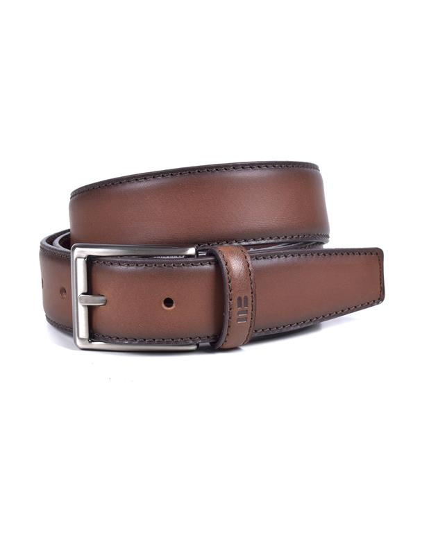 Cinturón en piel de vacuno.Ideal para combinar con tu traje y zapatos marrones.Ancho: 32 mm