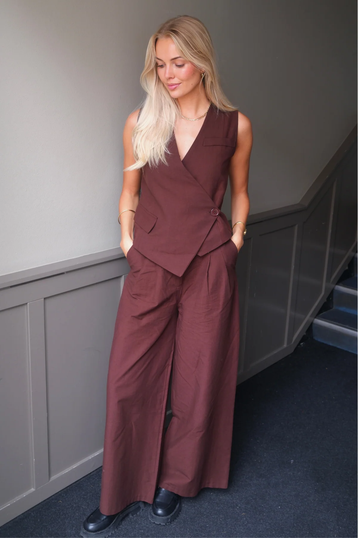 Melissa amplia Pants – Marrón
