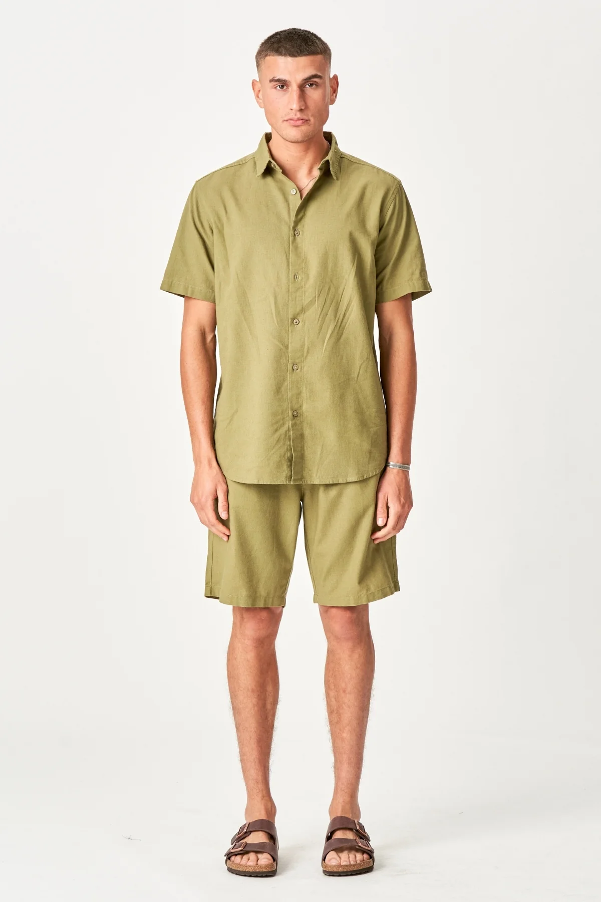 Conjunto de lino Camisa de manga corta + lino Shorts – Verde (paquete de oferta)