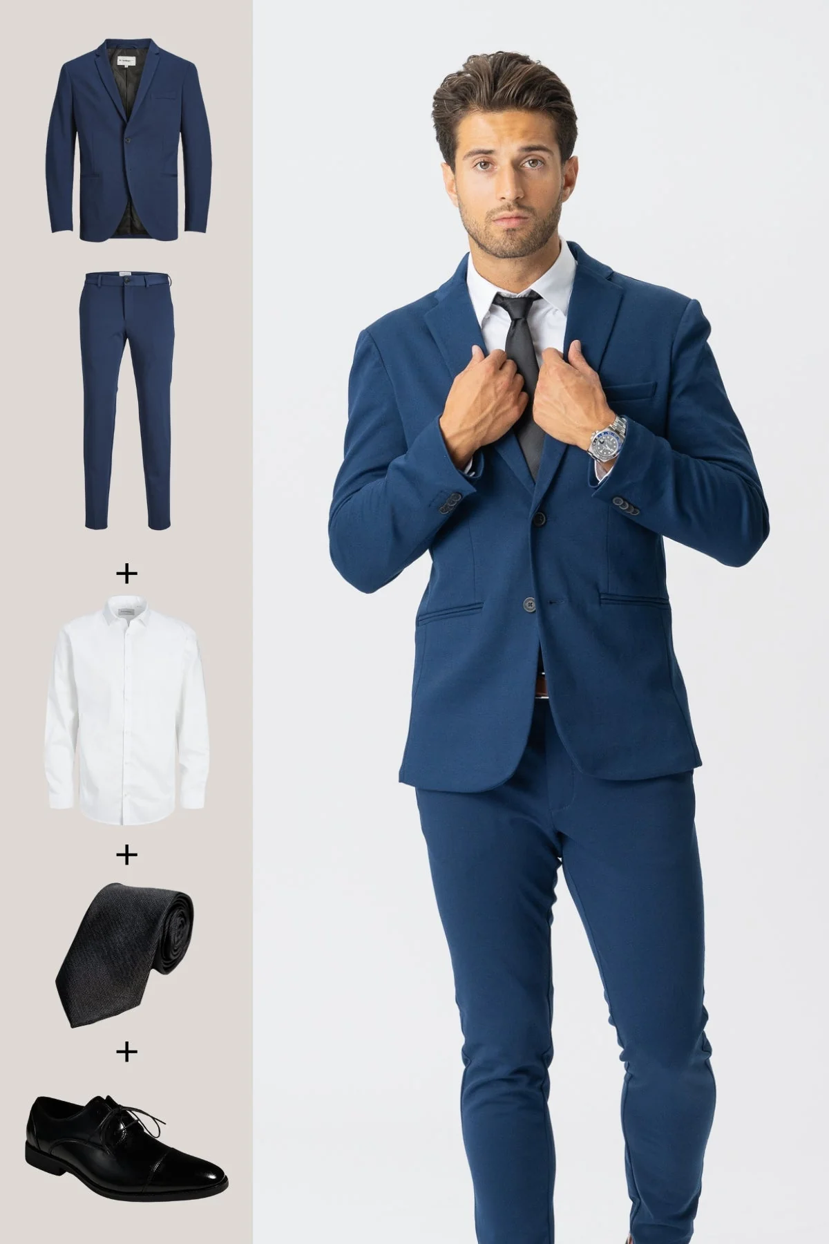 The Original Performance Traje (azul) + camisa, corbata y zapatos James – Oferta de paquete