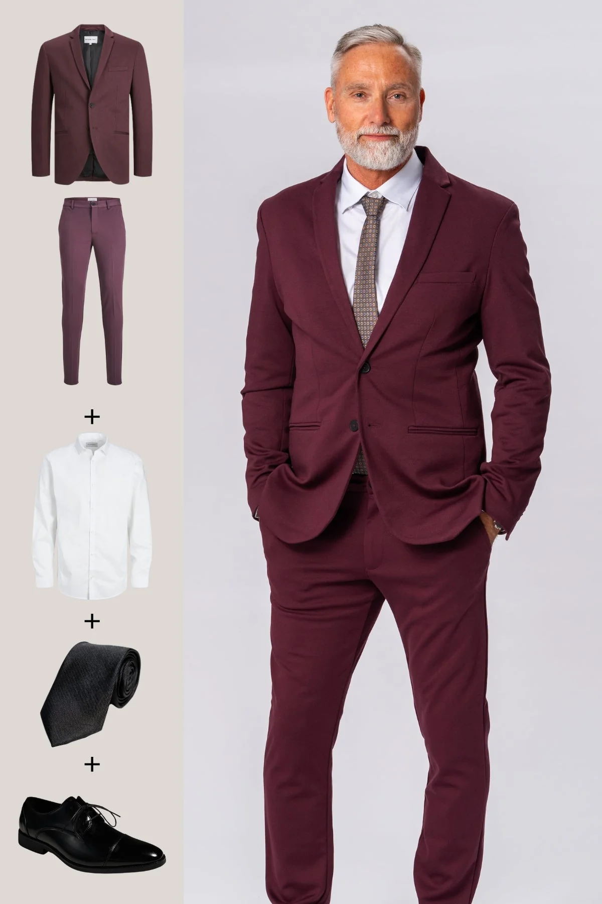 The Original Performance Traje (Borgoña) + Camisa, Corbata y Zapatos Derby – Oferta de Paquete