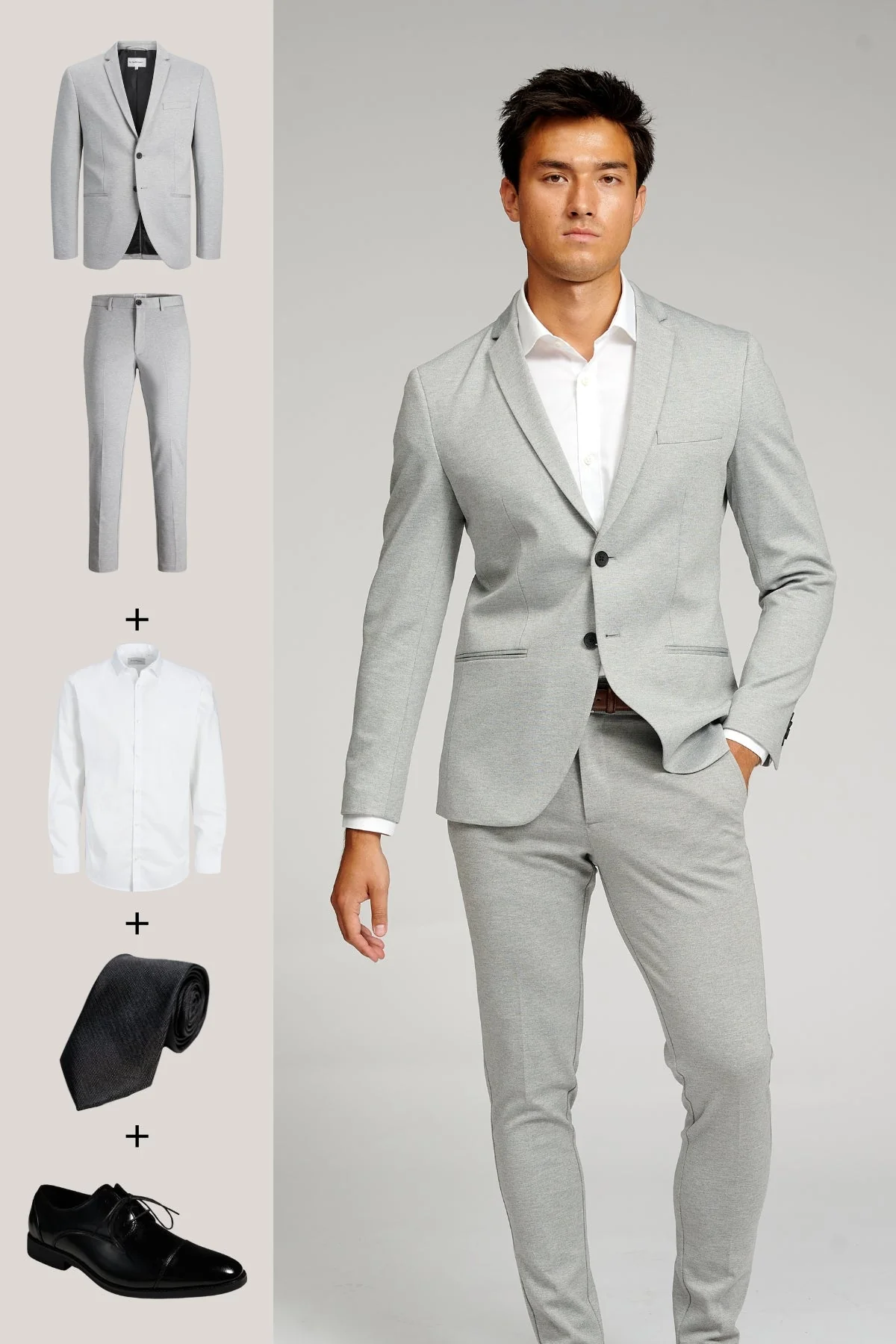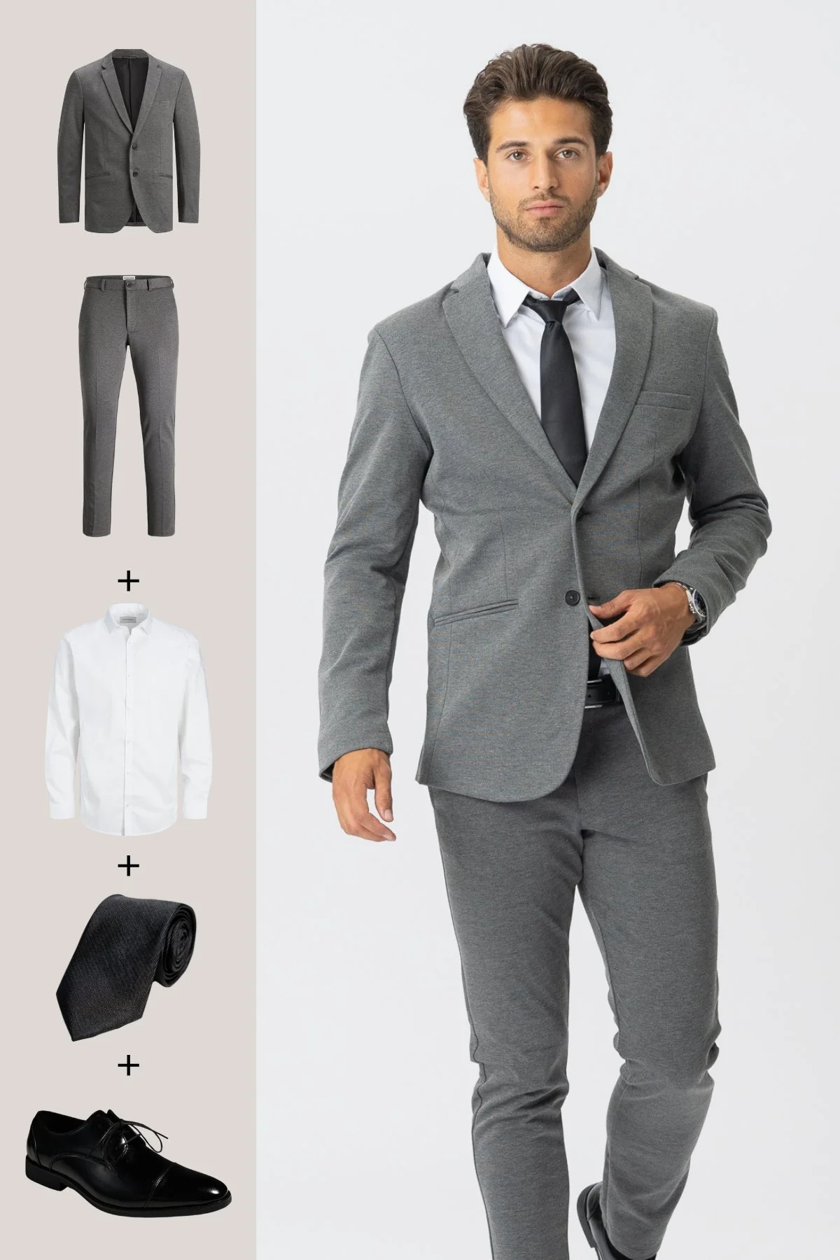 The Original Performance Traje (gris claro) + camisa, corbata y zapatos James – Oferta de paquete