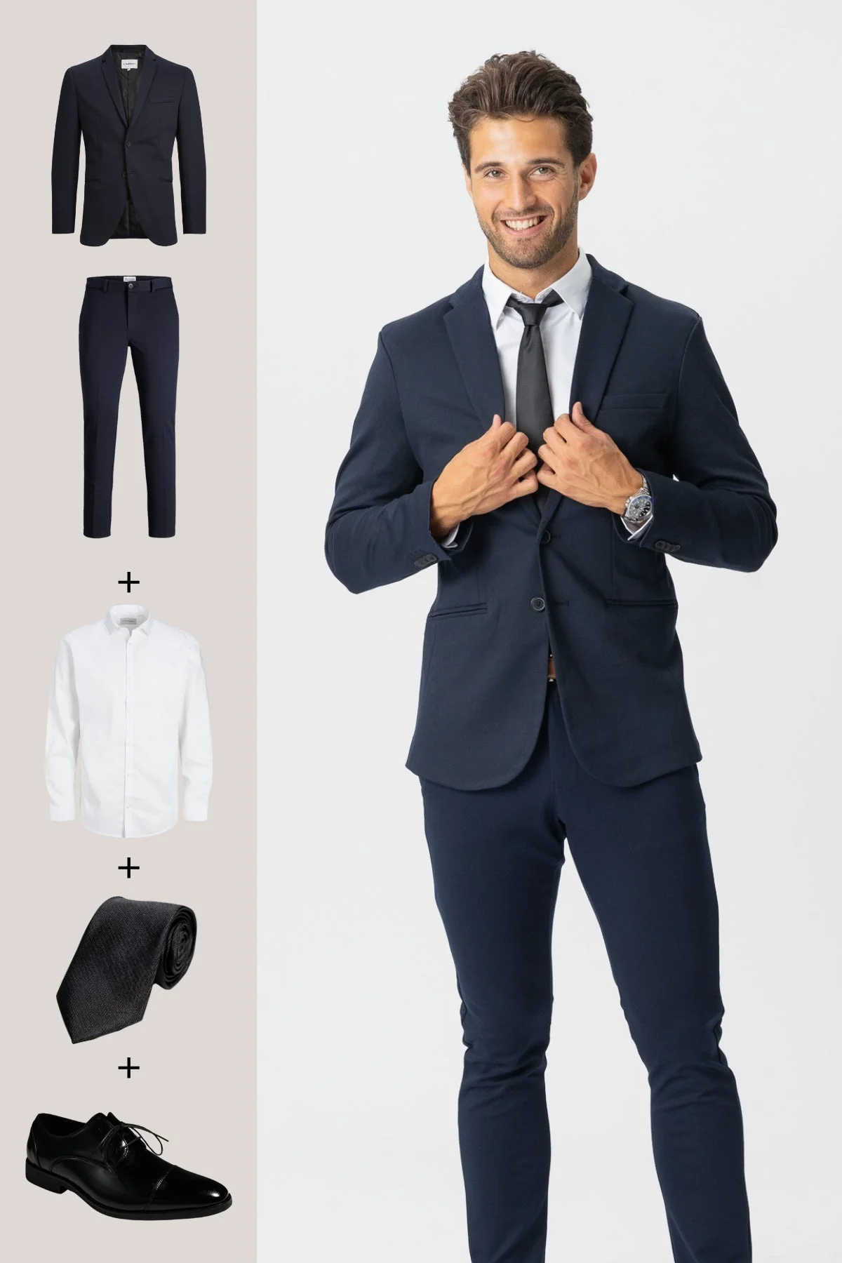 The Original Performance Traje (azul marino) + camisa, corbata y zapatos James – Oferta de paquete