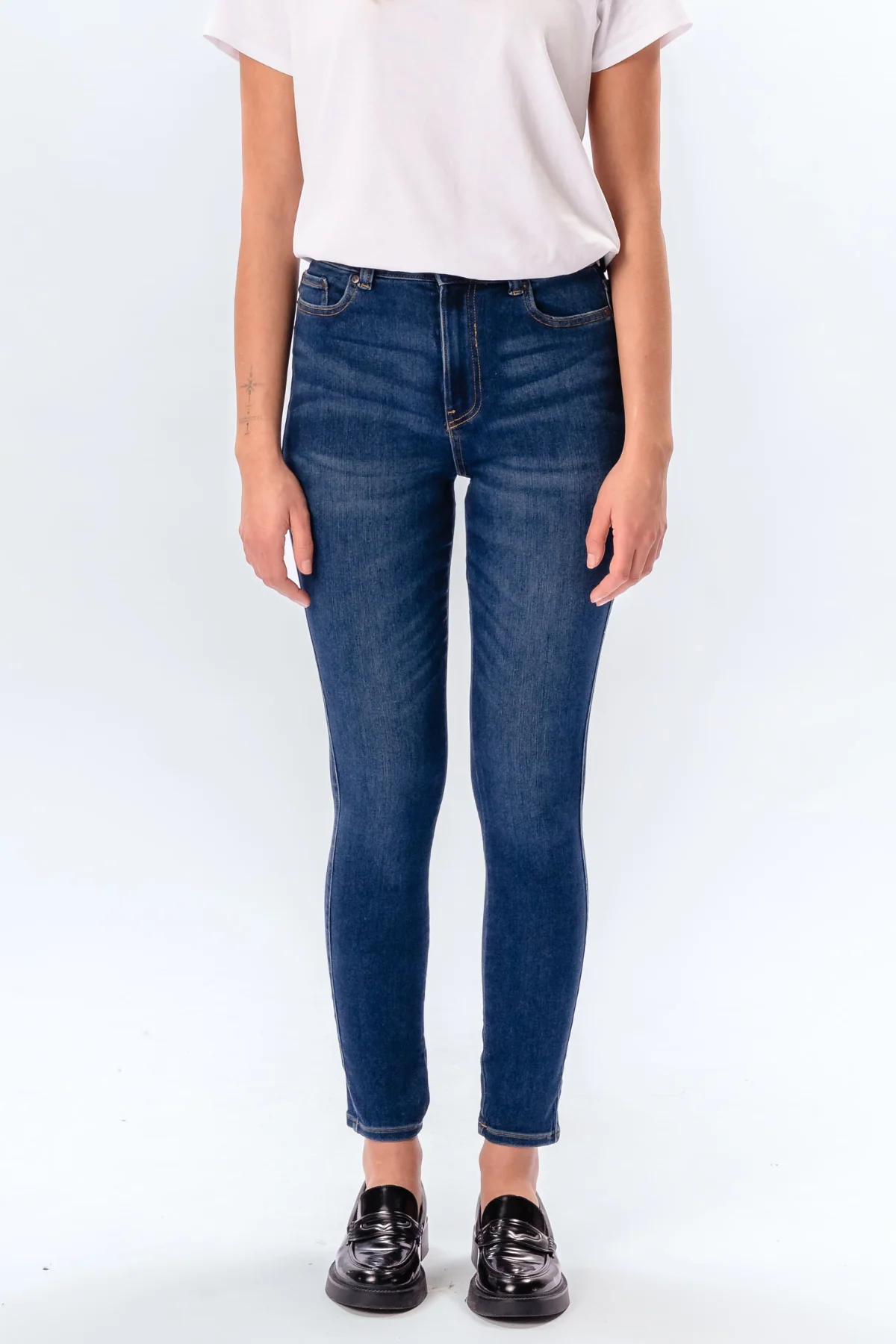 El rendimiento original de los jeans delgados – mezclilla de azul mediano