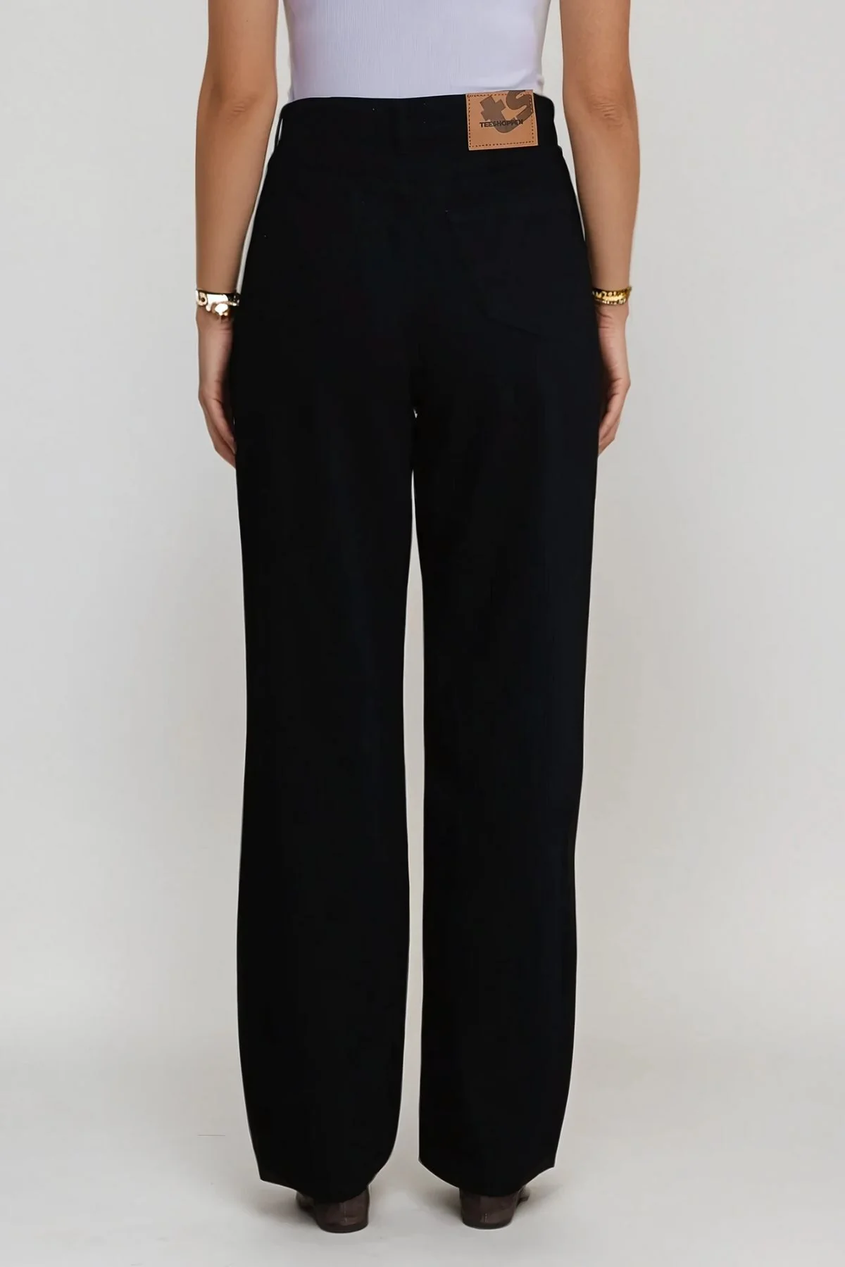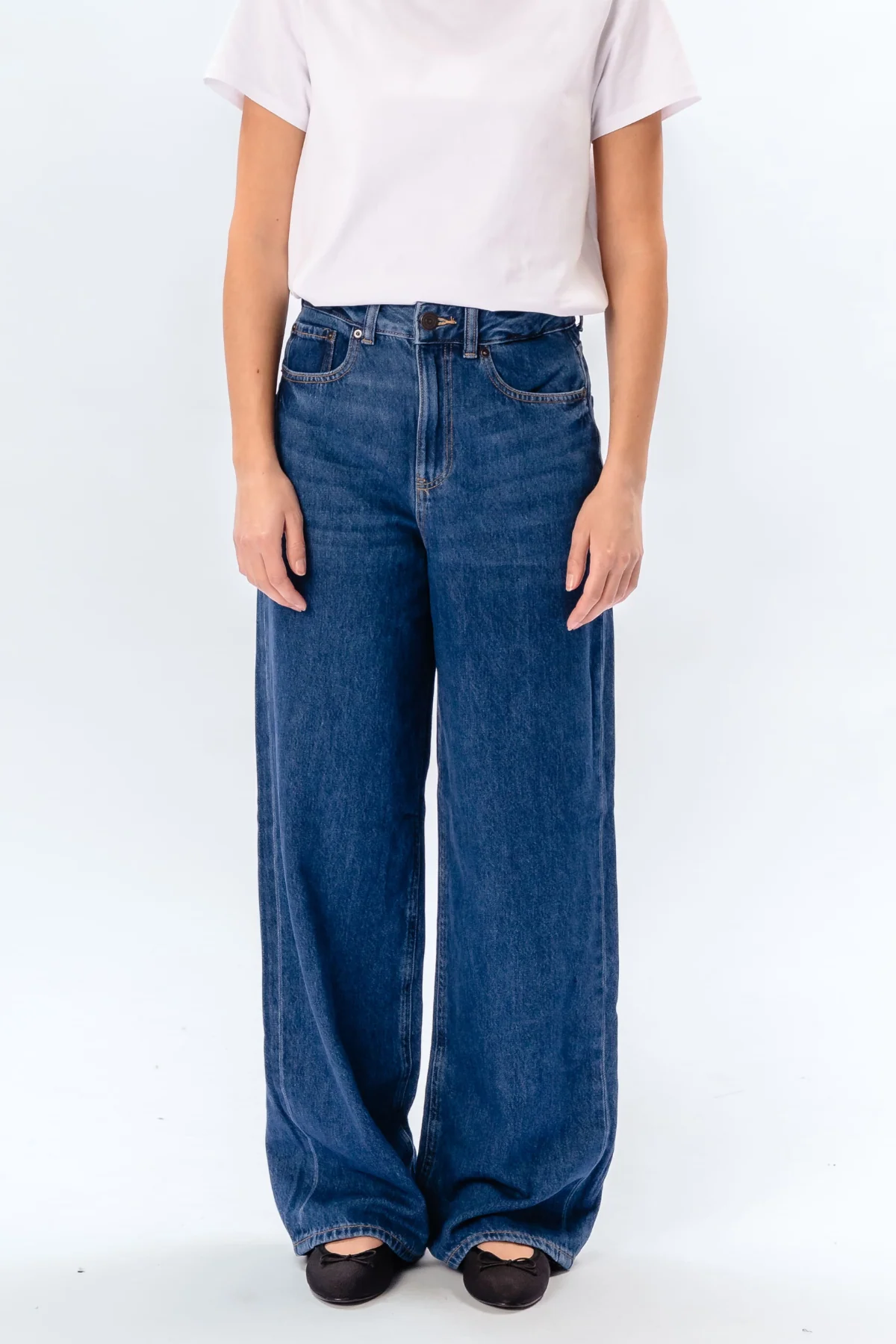 Marco lisa ancho Pants – lavado de enjuague de mezclilla azul oscuro