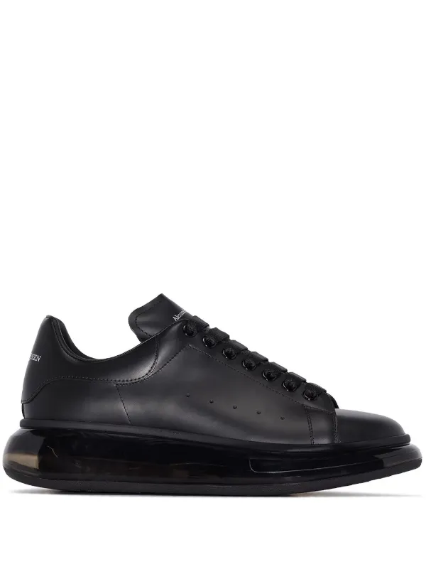 Tenis mid-top con suela transparente en cuero de color negro de Alexander McQueen con logo estampado en la parte posterior, logo en relieve en la lengüeta, puntera redonda y agujetas en la parte delantera.