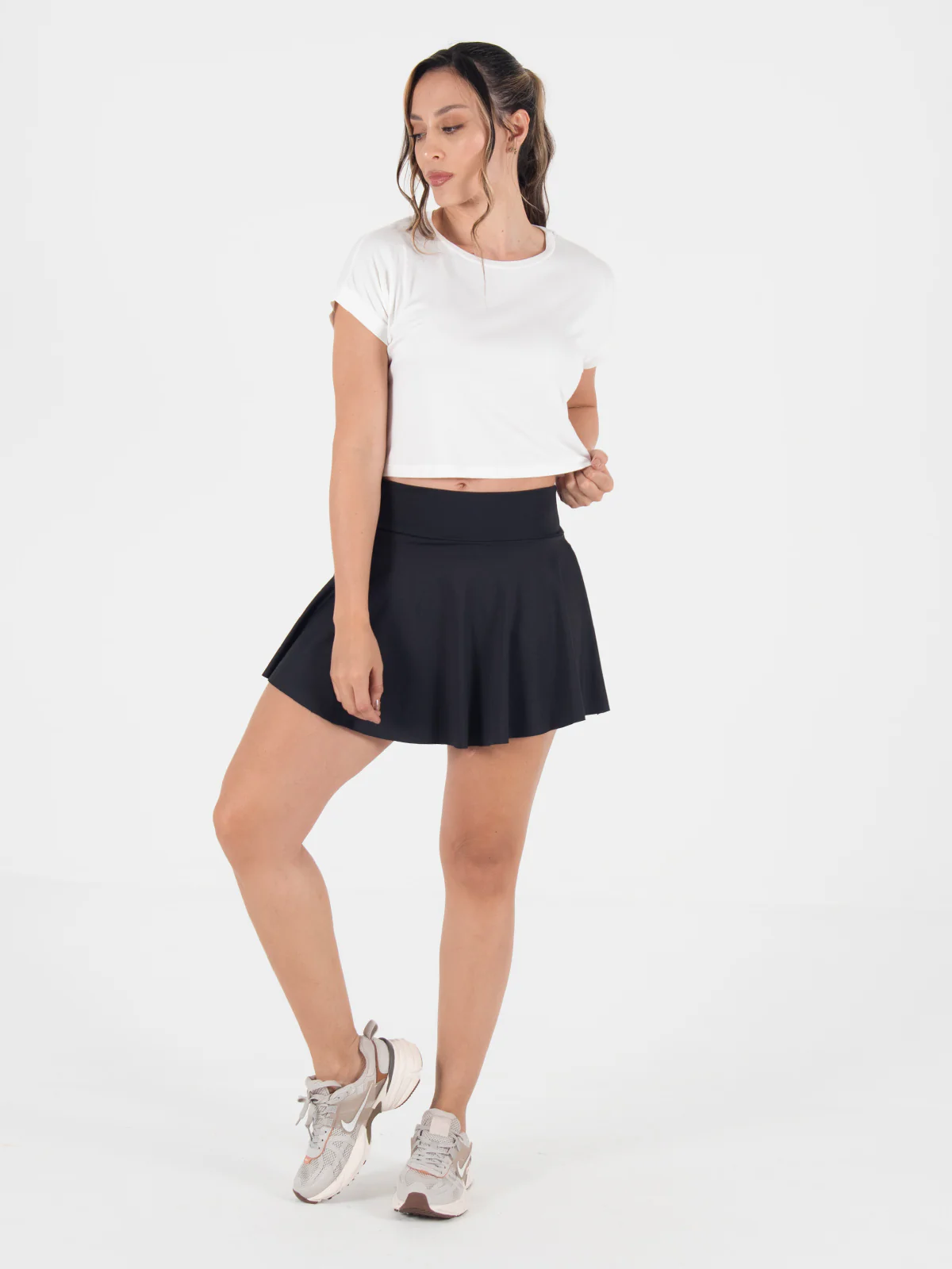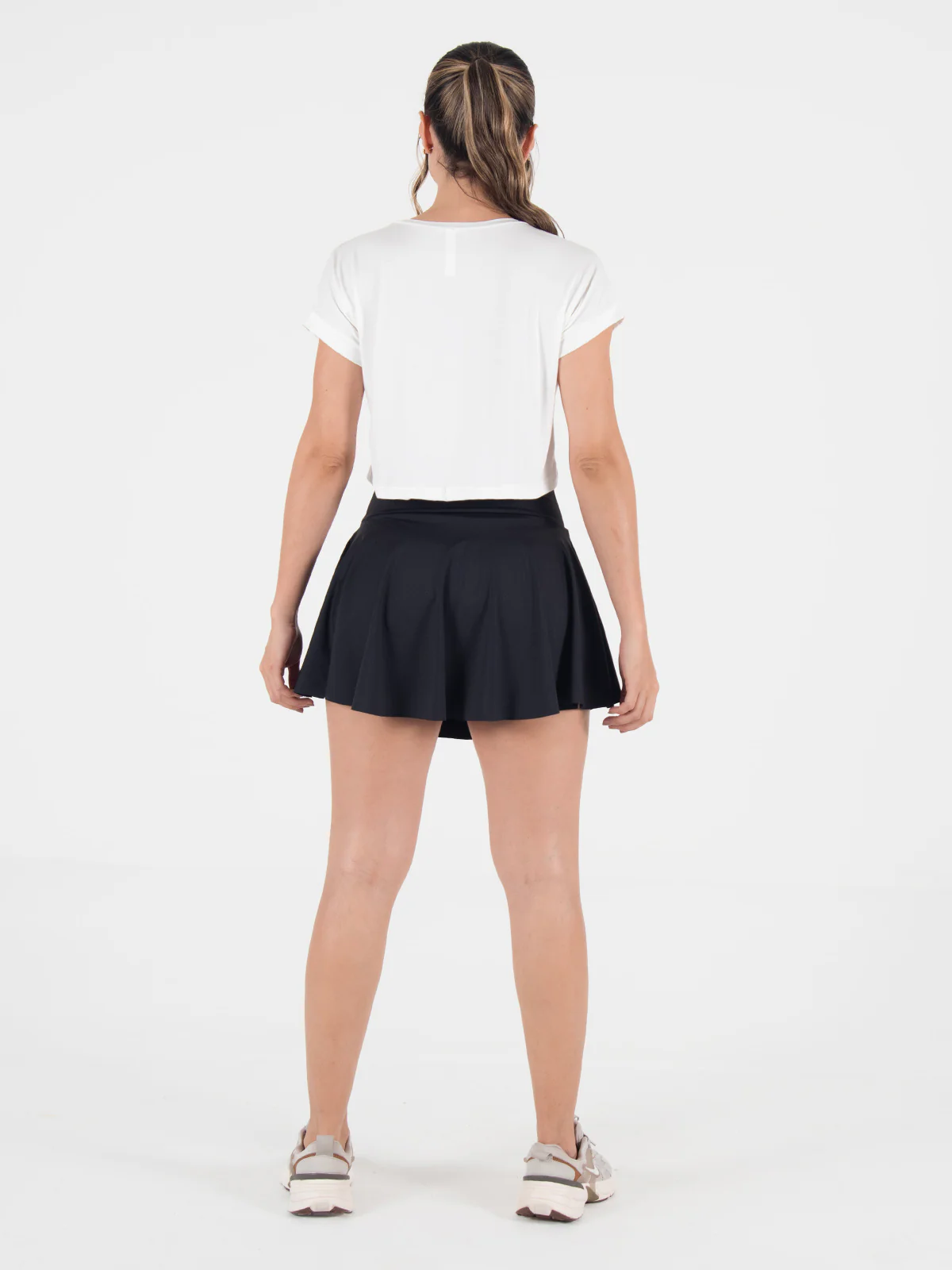 Faldashort: Diseño con falda simétrica y fajón medio que ofrece un ajuste favorecedor y moderno.
