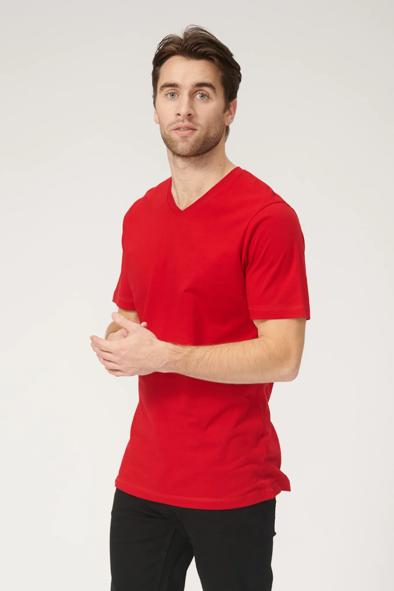 Nuestro Basic Camiseta de cuello en V en rojo: eleva los elementos esenciales de tu armario
