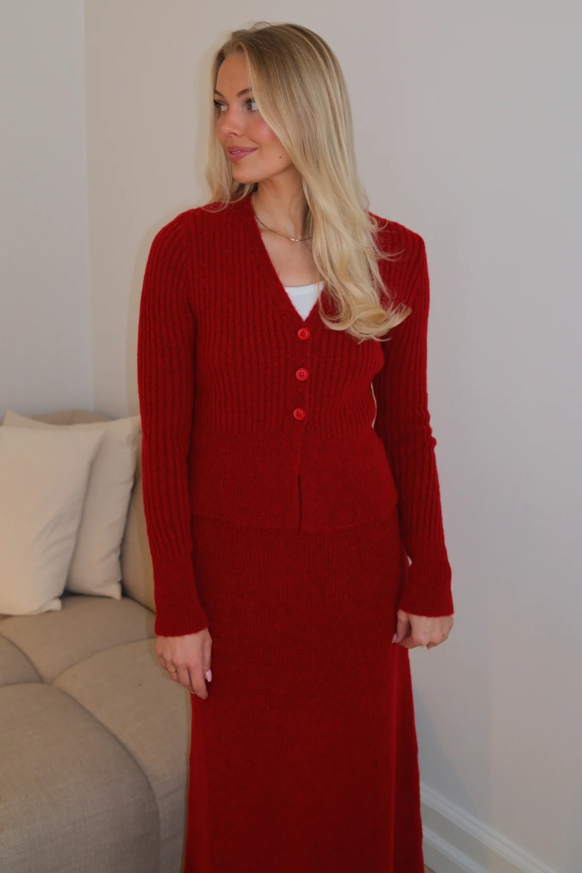 - 80% Acrílico: Ofrece una sensación lujosamente suave, similar a la lana, sin picazón. Ess liviano, acogedor y mantiene de manera experta su color rojo brillante, lo que garantiza que no se desvanezca con el tiempo.