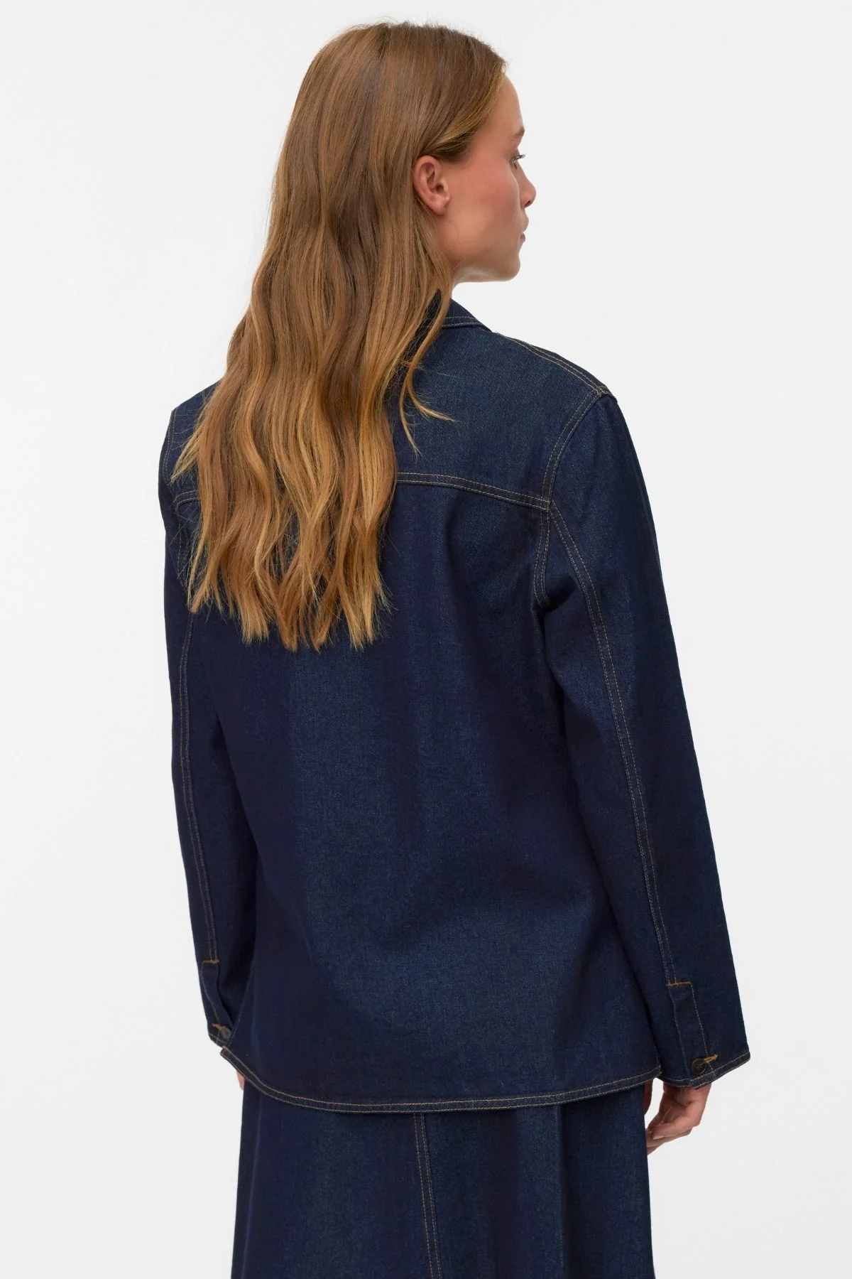 Imagine la silueta aguda y que aumenta la confianza de una blazer combinada con la comodidad y el ambiente en cualquier lugar de su camisa de mezclilla favorita. Eso’s La magia del Kanika. Hecho en un rico lavado azul oscuro, esta pieza ofrece una versatilidad incomparable. Las lÃneas limpias y el ajuste a medida crean una forma favorecedora que eleva instantáneamente cualquier atuendo, mientras que la textura de mezclilla clásica lo mantiene en tierra y sin esfuerzo. Él’s El secreto para ver perfectamente puestos con un esfuerzo mÃnimo.
