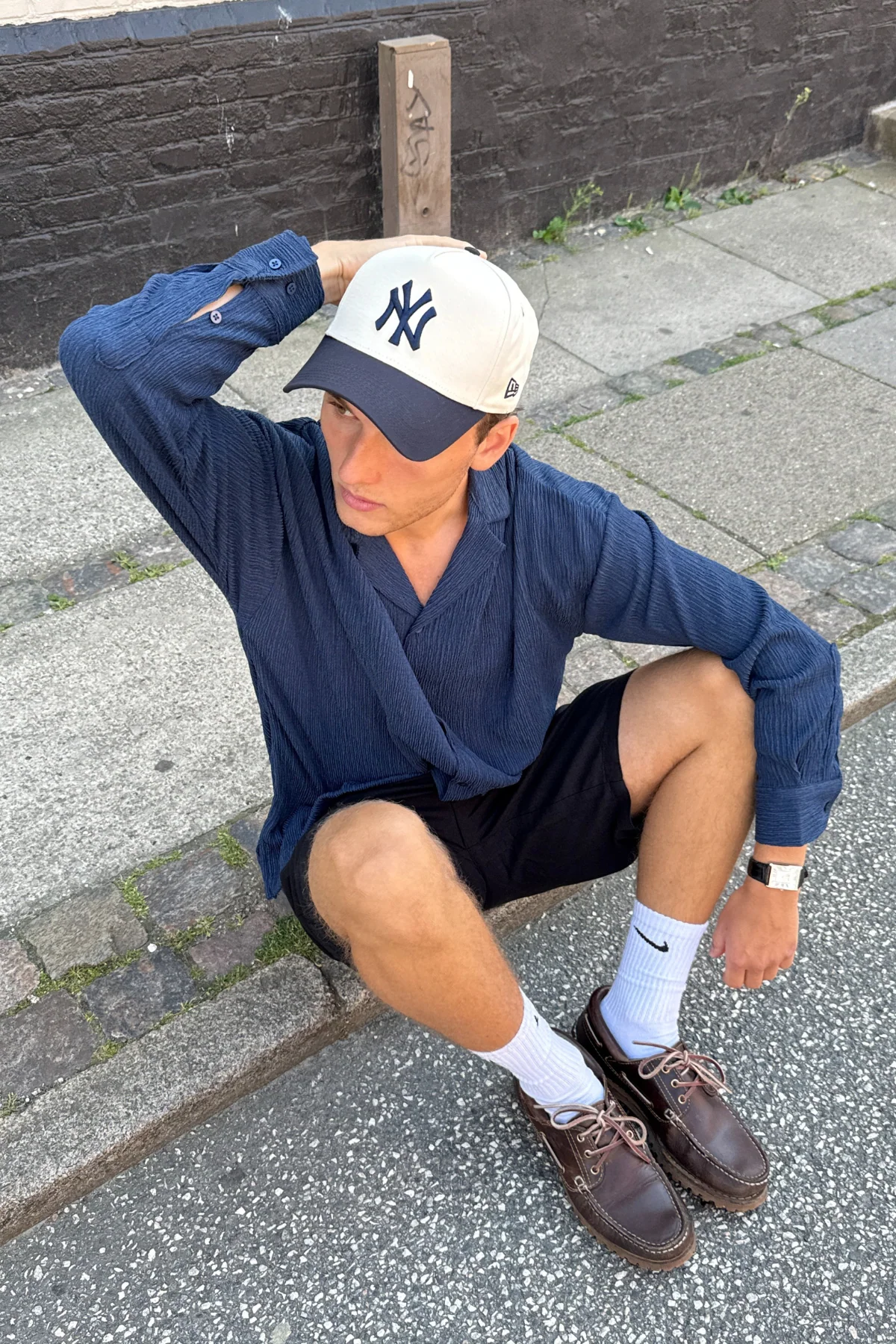- Retención de color vibrante: La sombra de la marina profunda se mantiene verdadera y vibrante, asegurando que su camisa se vea nueva e impresionante por más tiempo.