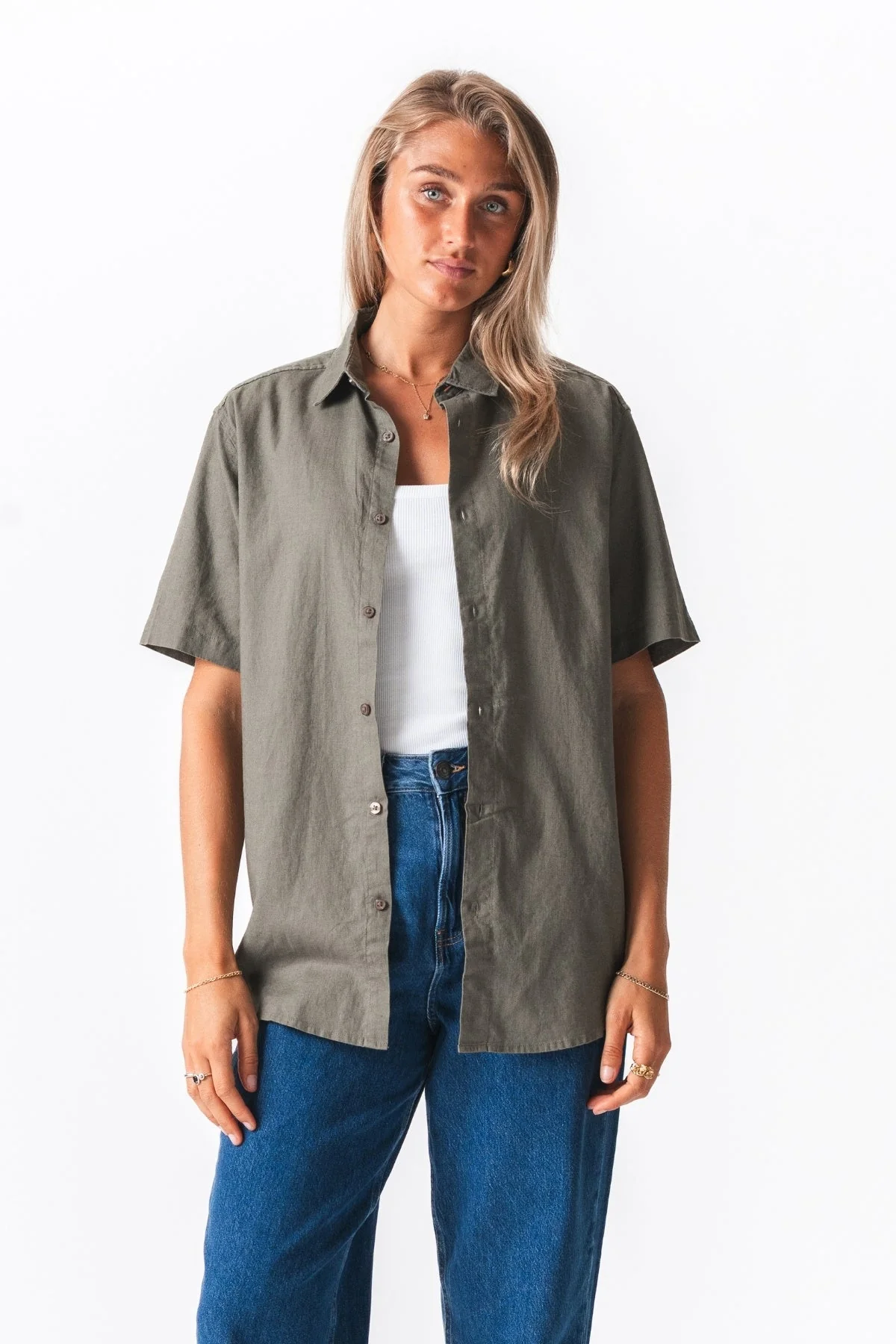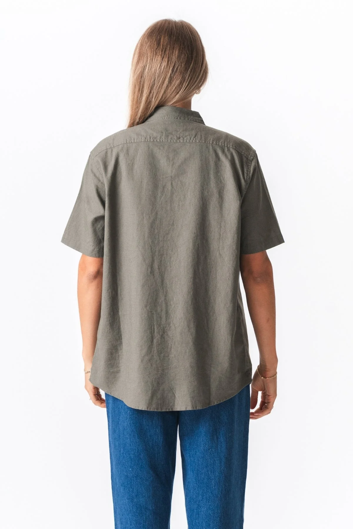 Camisa de lino de manga corta – Ejército