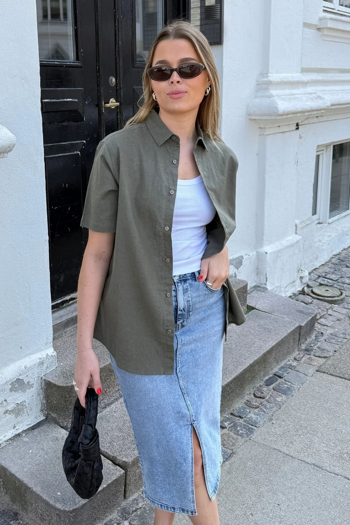 Presentando la camisa de mezcla de lino de manga corta esencial de TeeShoppen – Su nueva piedra angular para aderezo elegante y cómodo. Diseñado para la mujer moderna que valora el estilo y la sustancia, esta camisa verde del ejército encarna la sofisticación sin esfuerzo. Imagine salir en un día cálido, sentirse fresco, seguro y perfectamente puestos. Esto no es solo una camisa; Es su boleto para elegancia fácil y comodidad transpirable durante toda la temporada.