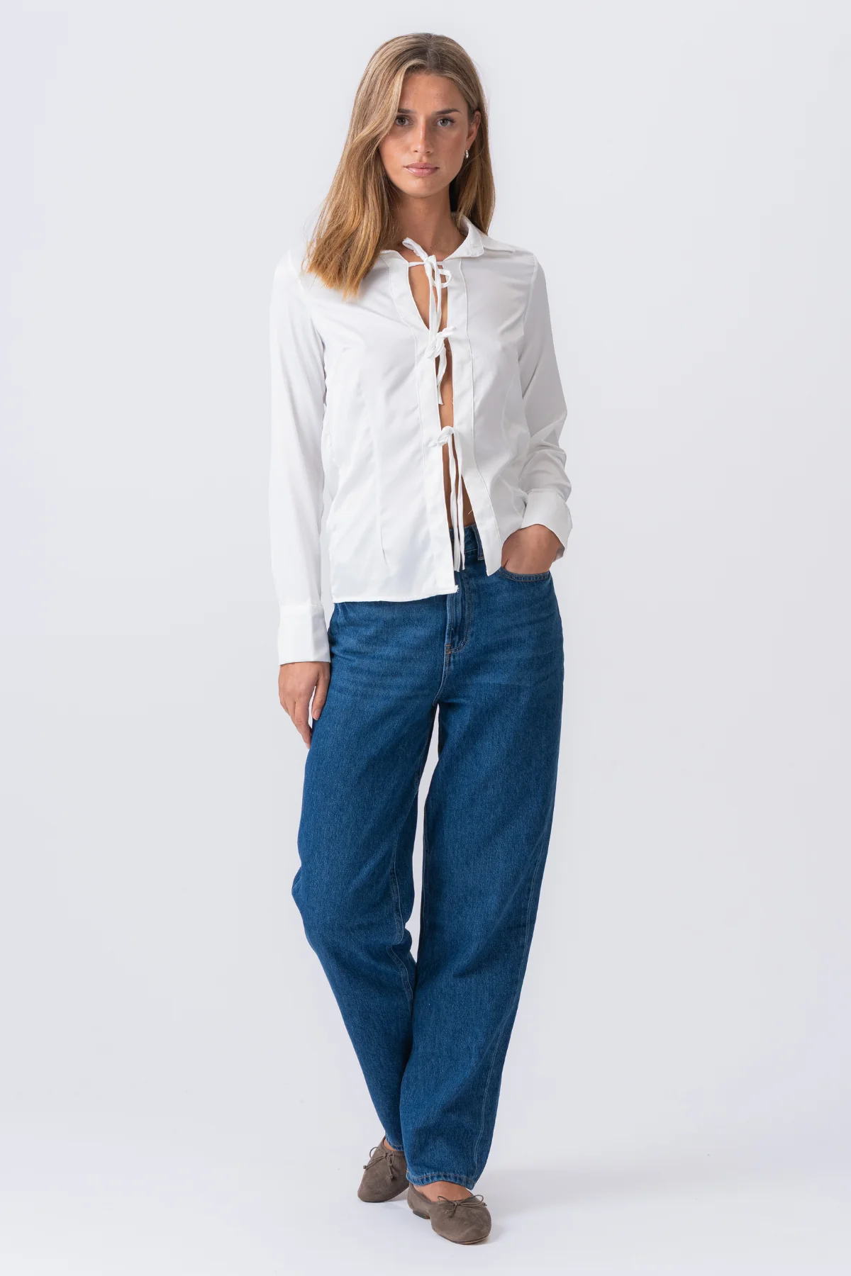El verdadero poder de la camisa Lucy Tie es su infinita versatilidad. Él’s Un camaleón de estilo que se adapta a sus necesidades. Cree un aspecto nítido y profesional combinándolo con fondos a medida, o vístelo para un atuendo de fin de semana informal y informal. Para un aspecto completo y pulido, explore nuestra colección curada de mujeres ‘s Pants Para encontrar el emparejamiento perfecto.