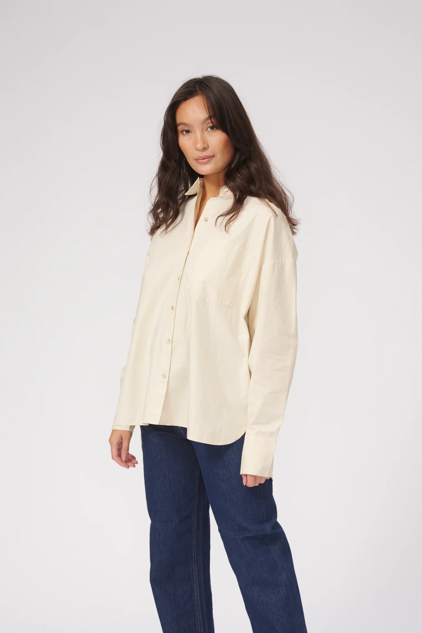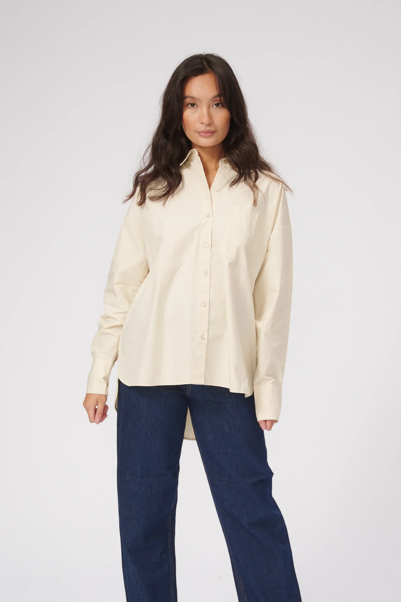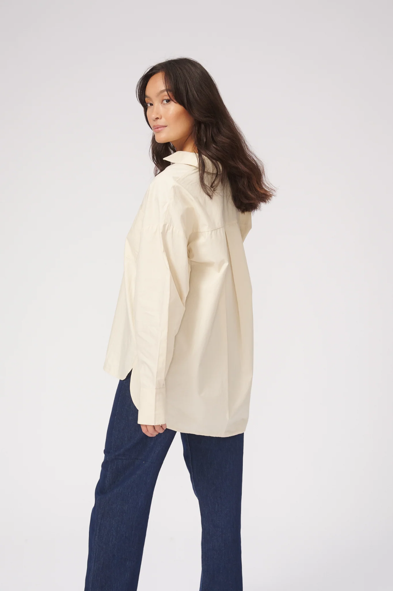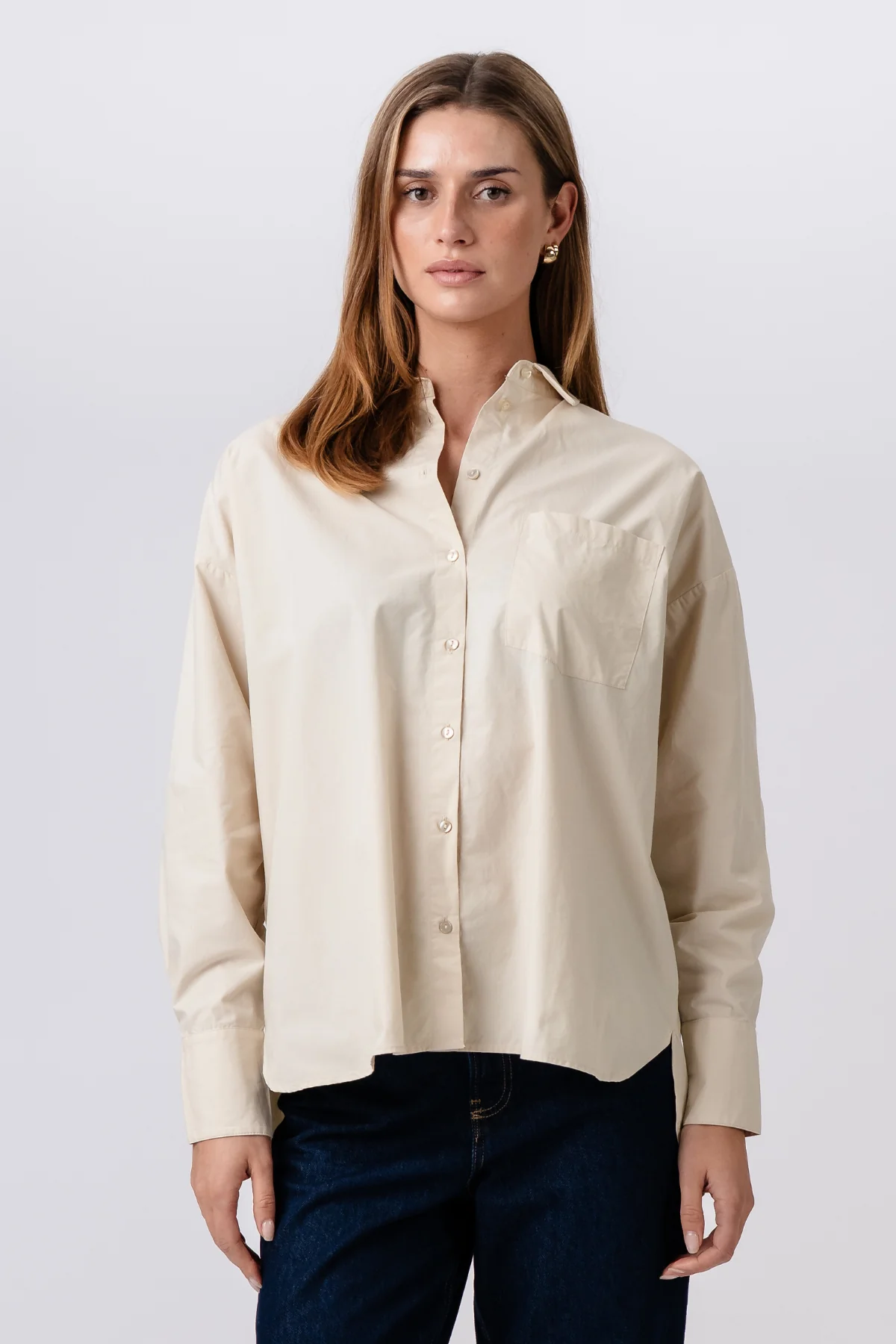 Relájese de estilo con nuestra camisa relajada en beige para mujeres. Diseñado para redefinir elegancia casual, esta versátil camisa Combina sin problemas la comodidad y la elegancia. Abraza la moda atemporal con este armario esencial.
