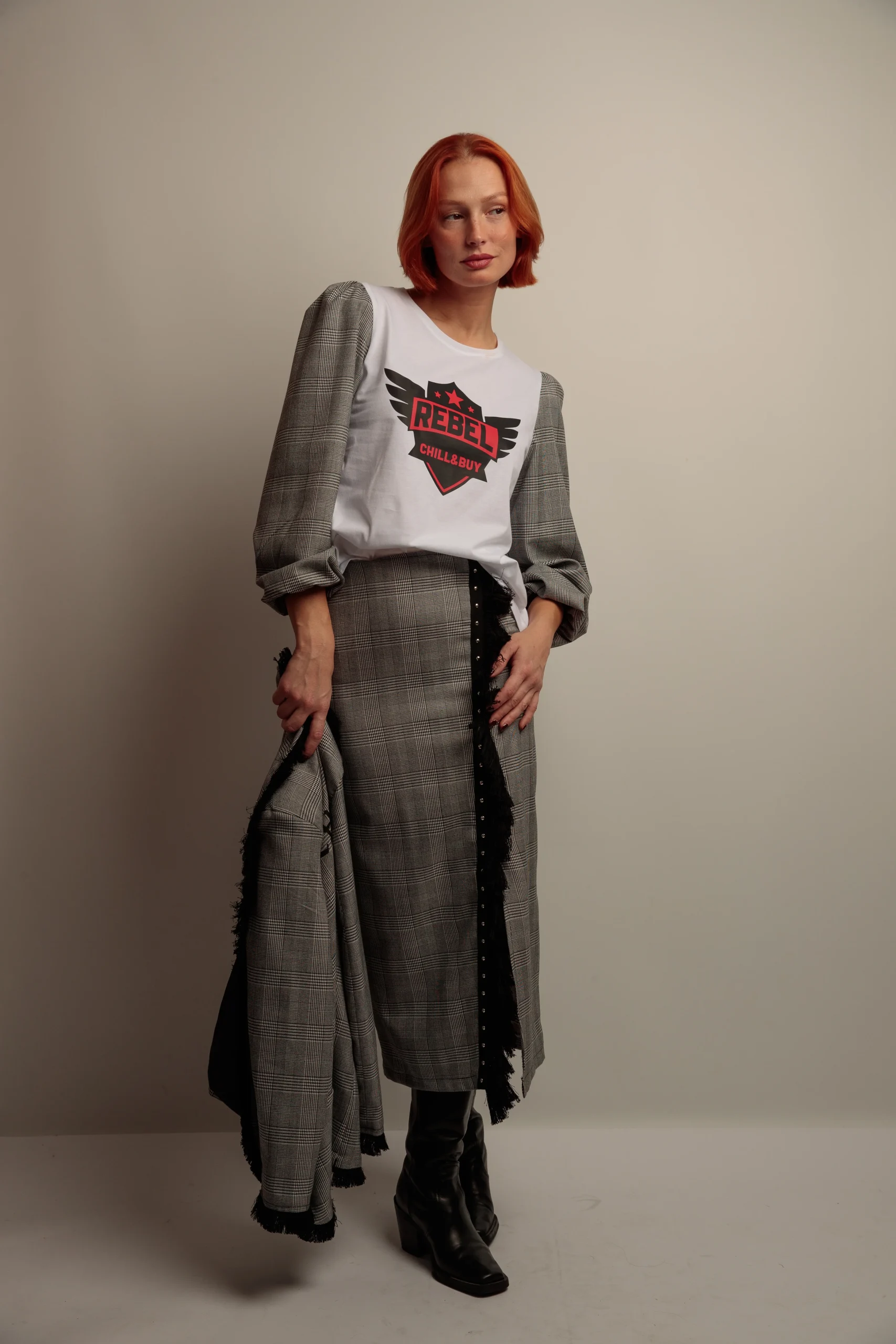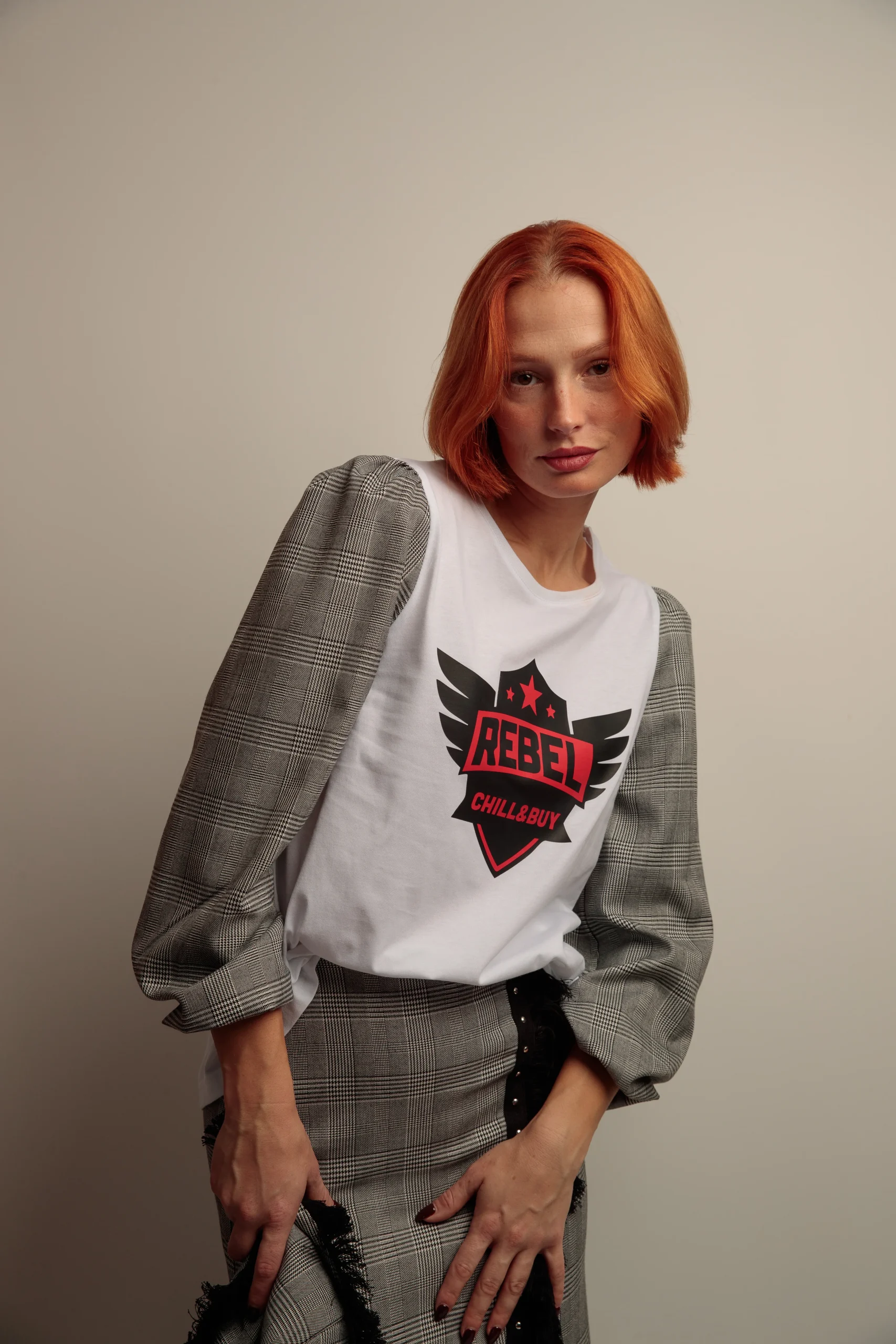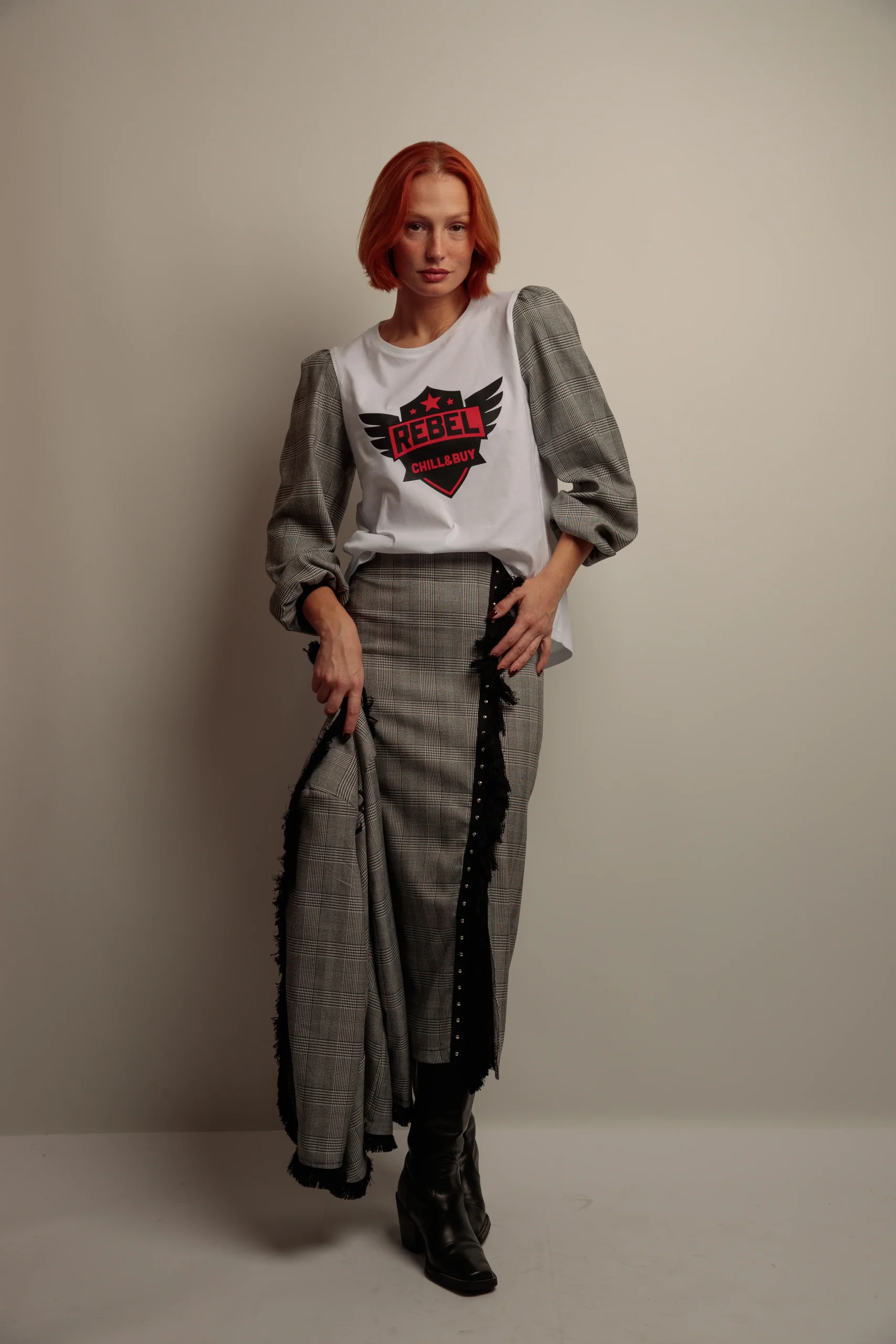 Disfruta de un estilo único con esta camiseta de algodón que combina manga abullonada para un toque divertido y puños de terciopelo que añaden suavidad y elegancia. Su corte evasé resalta la figura de manera cómoda, mientras que el bajo asimétrico aporta un detalle dinámico y moderno. Perfecta para darle un giro rebelde y chic a tu look diario.