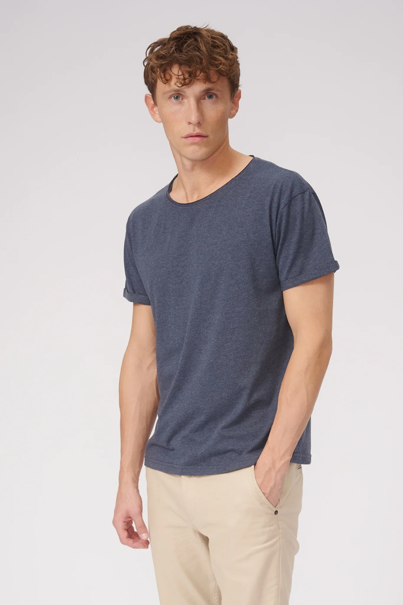 Compra hoy tu Camiseta de cuello crudo azul jaspeado