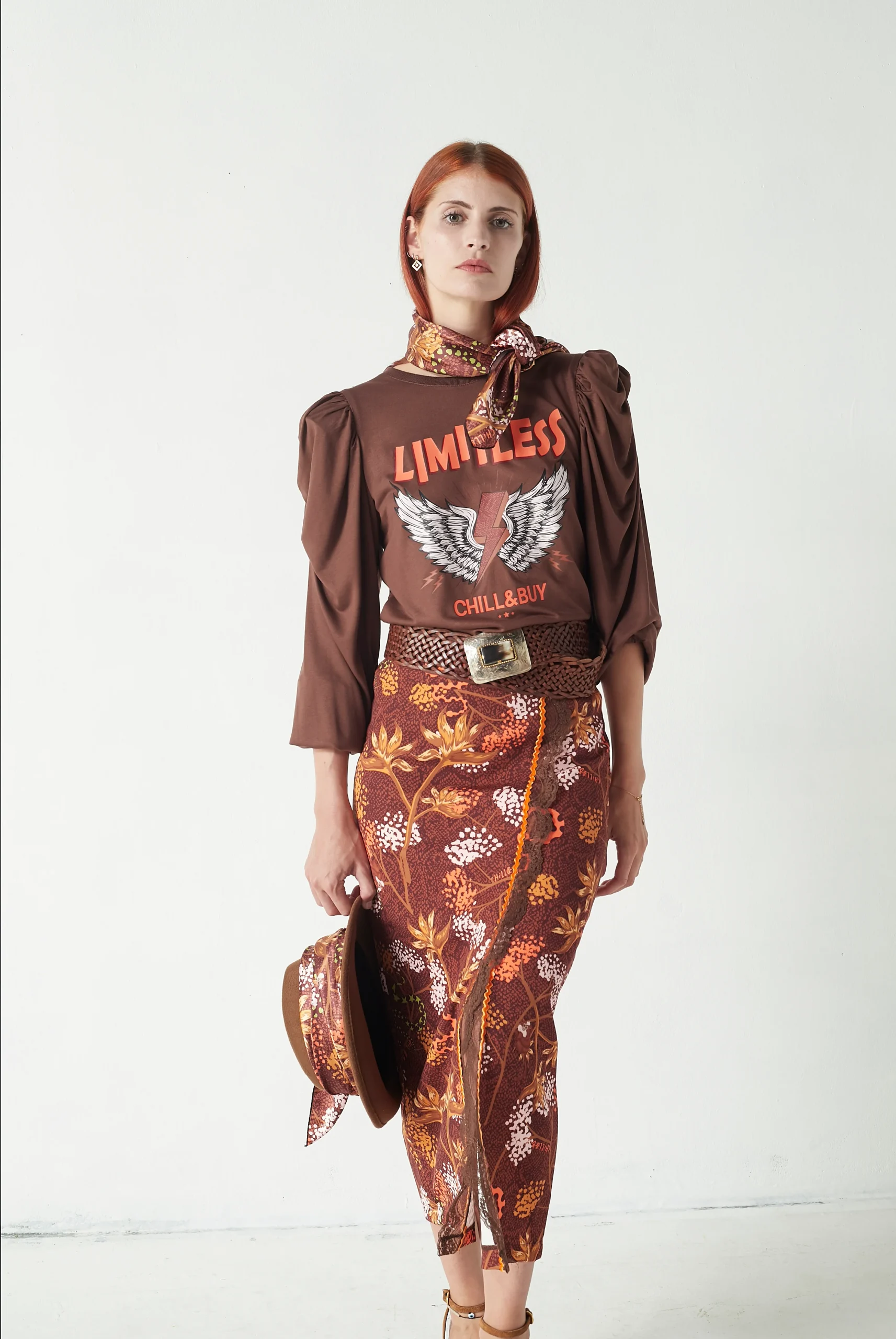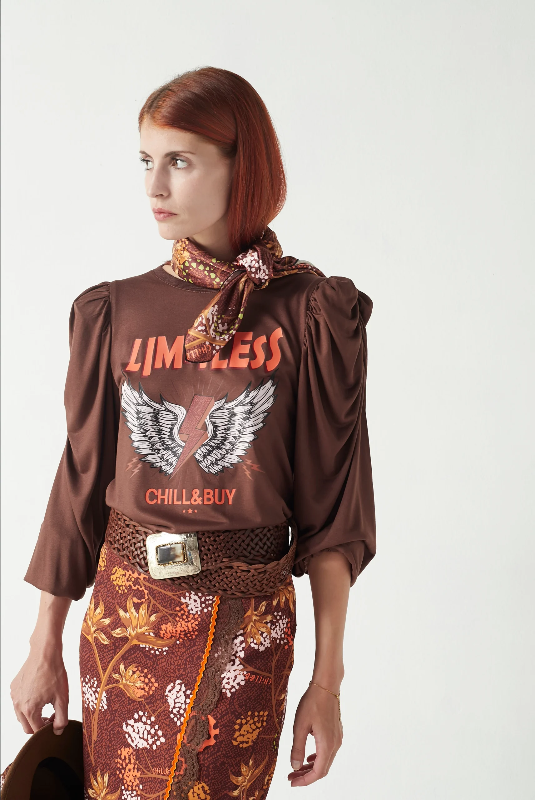 Camiseta de viscosa en color marrón con corte recto y cuello redondo, diseñada para ofrecer comodidad y estilo con un detalle de manga que la hace única.