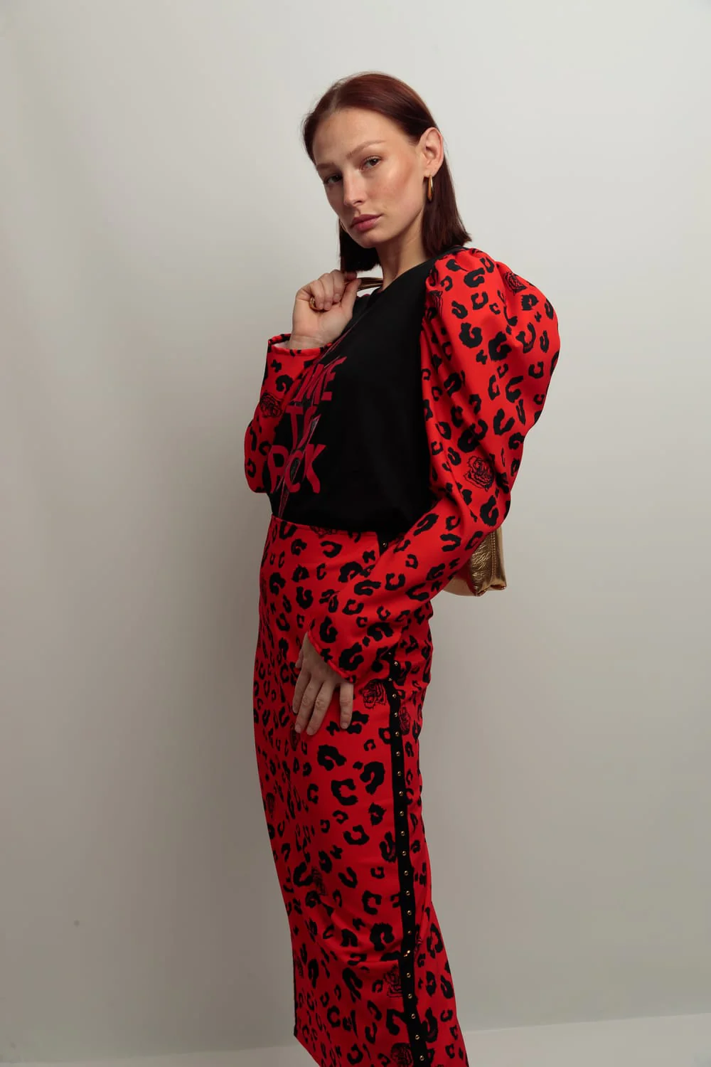 Camiseta de algodón en color negro con cuello redondo, y corte evasé. Detalle de mangas abullonadas con frunce lateral, Estampación frontal.