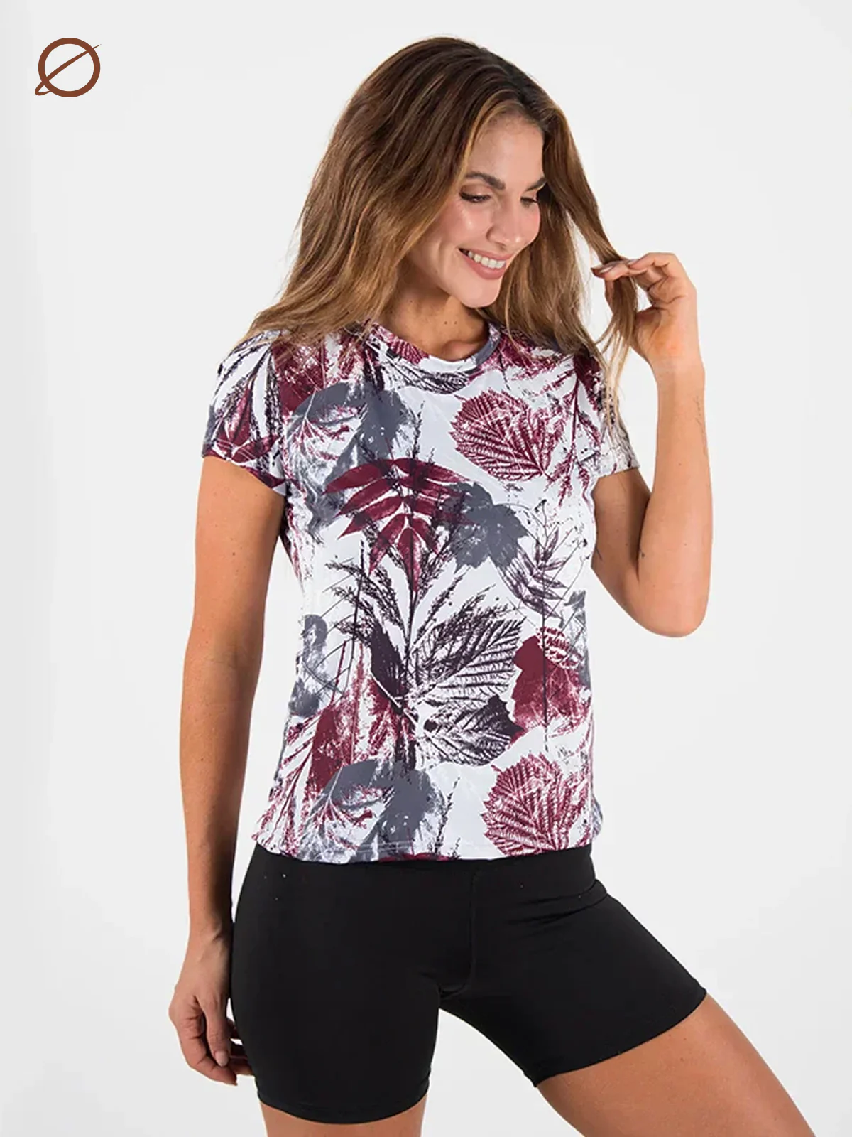 Camiseta básica femenina cuello redondo, manga corta, largo abajo de la cintura.