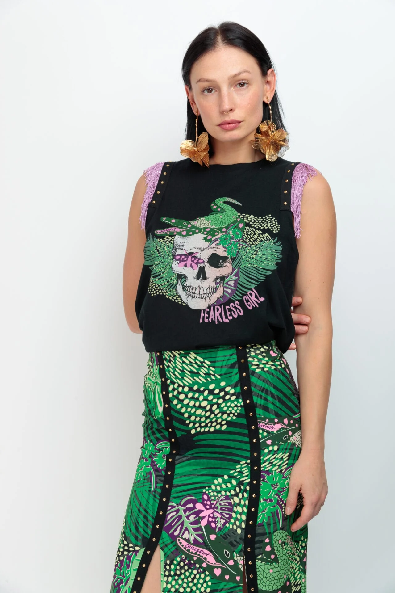 Camiseta Flecos Skull Jungla – Personalidad, Estilo y Detalles Únicos.