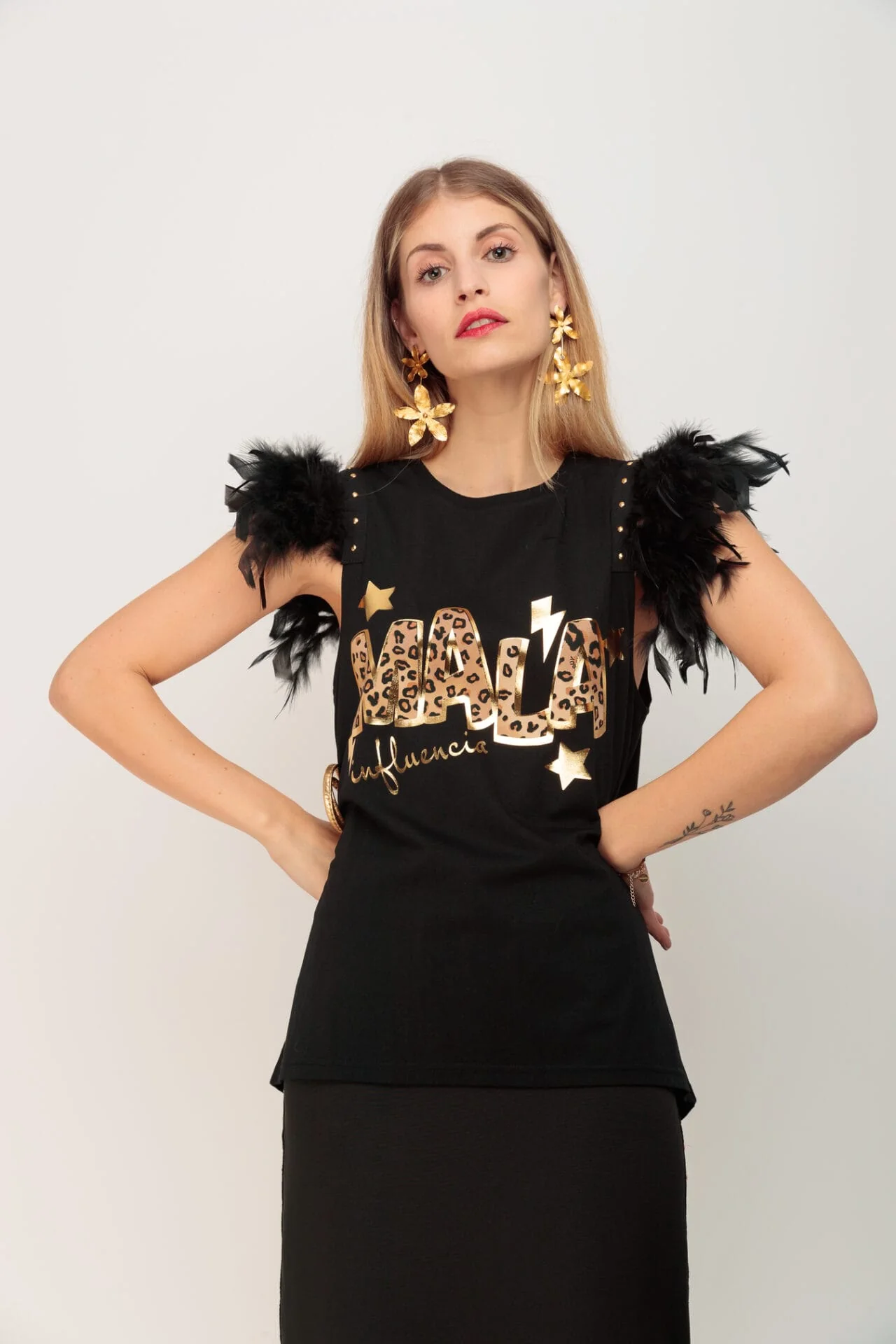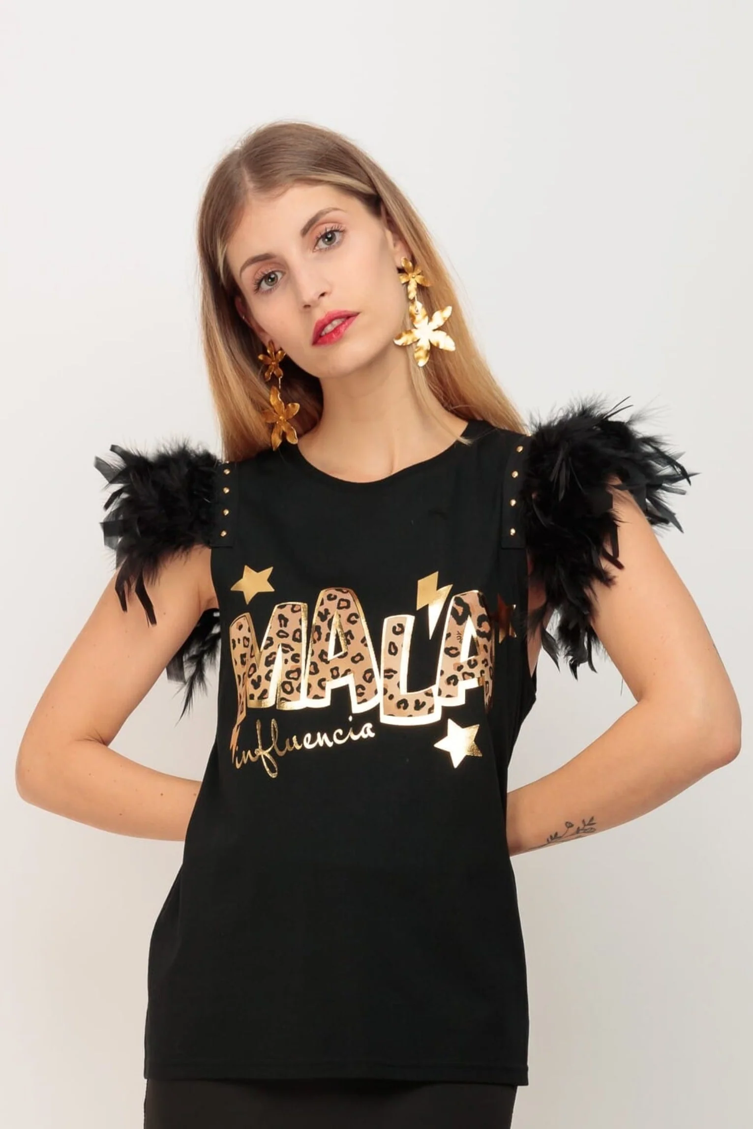 Camiseta Plumas Mala Leopard: Fusión de Elegancia y RebeldÃa