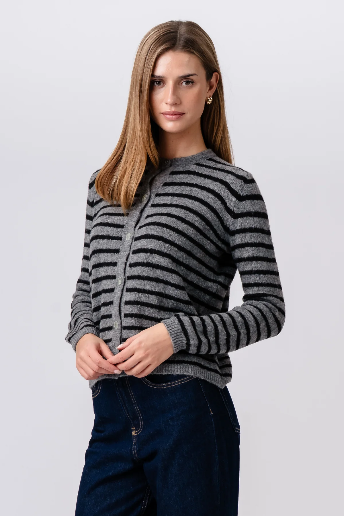 La belleza del cárdigan Crizette radica en su infinita versatilidad. La clásica raya gris y negra es una maestra de la adaptación y se adapta perfectamente a cualquier estética. ¿Necesita una apariencia refinada para esa reunión importante? Colóquelo sobre una impecable blusa blanca y un par de pantalones a medida. Pants para un estilo profesional instantáneo. ¿Vas a disfrutar de un brunch informal de fin de semana? Combínalo con tus jeans favoritos y una camiseta sencilla para un conjunto relajado pero perfectamente combinado. Esto no es sólo una prenda de vestir; es una solución a tus dilemas diarios sobre qué ponerte.