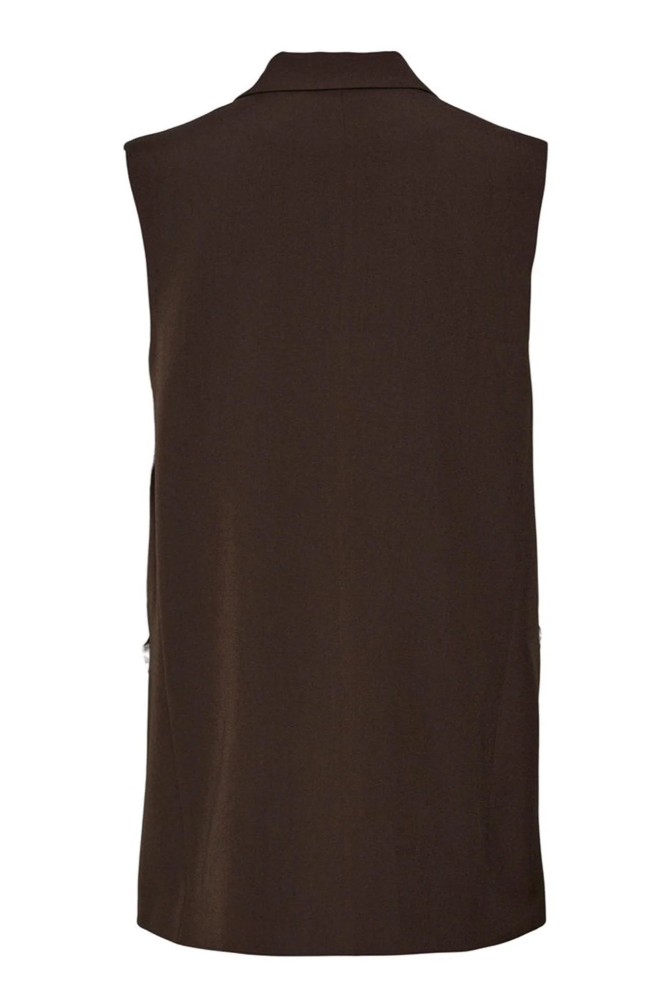 Agregue un toque de sofisticación a su look con nuestro chaleco de Blazer Troian en granos de café, una pieza elegante y versátil para cualquier guardarropa. Hecho a partir de tela de alta calidad con un ajuste a medida, este chaleco ofrece estilo y comodidad para la mujer moderna.