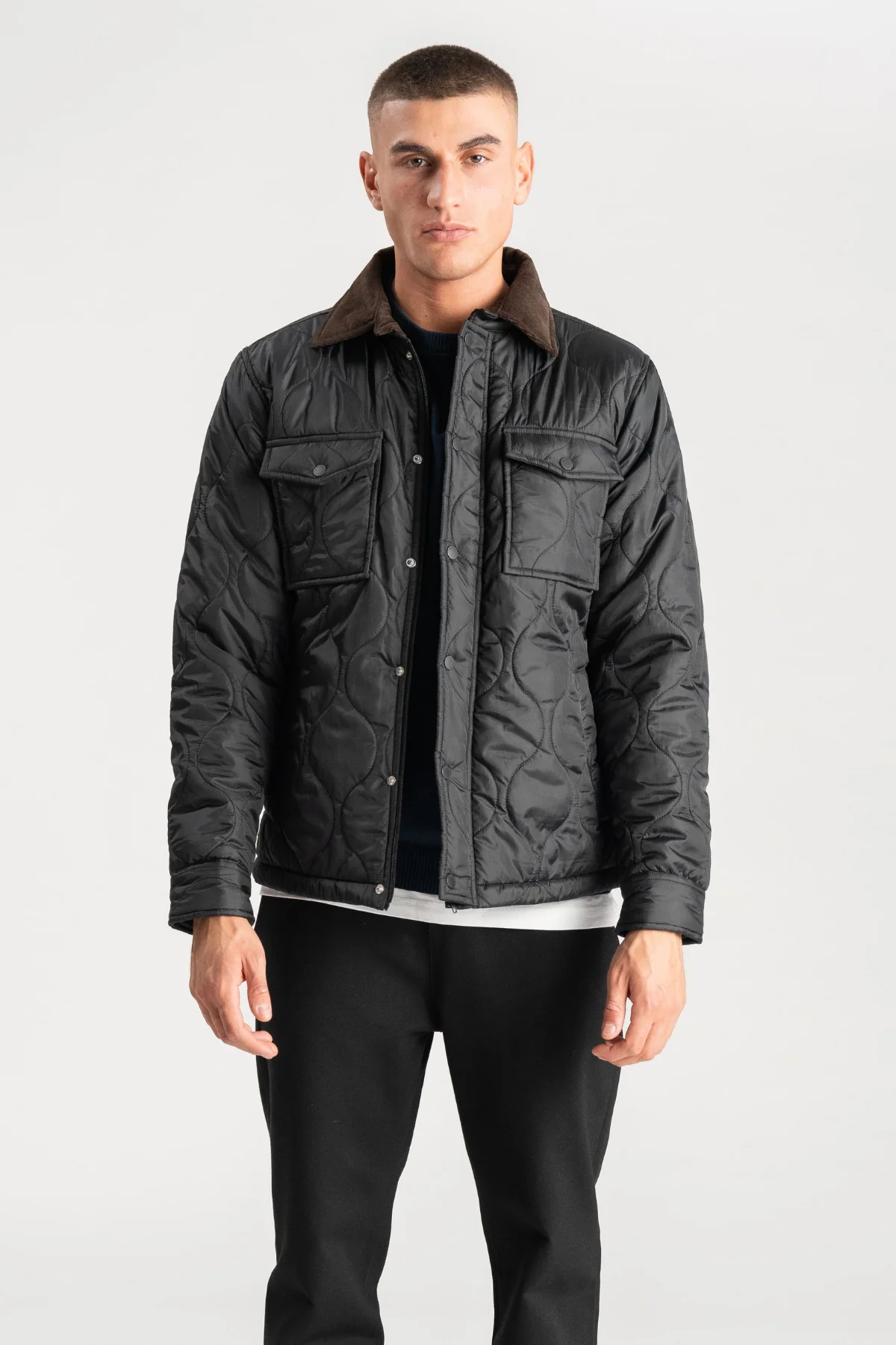 No se limite a aceptar el frío invernal; Enfréntalo de frente con una chaqueta que promete calidez y refinamiento. Adecuado para superponer camisetas y suéteres por igual,s su opción tanto para ambientes formales como relajados. Elige la chaqueta acolchada en negro y redefine tu colección de prendas de abrigo hoy.