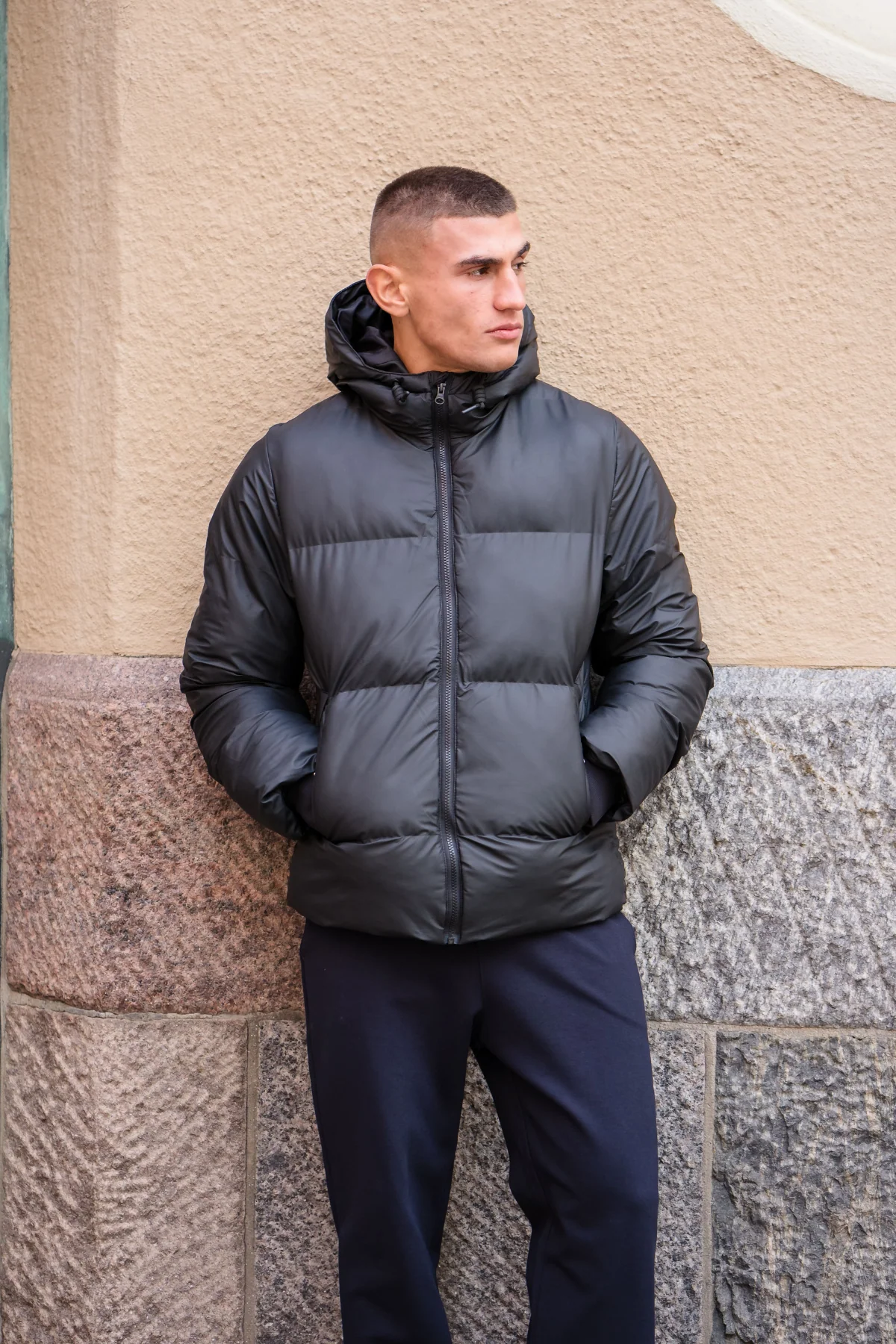 Experimente la mejor combinación de estilo y funcionalidad con nuestra chaqueta revestida con capucha en negro, diseñada exclusivamente para hombres. Esta pieza versátil combina un diseño contemporáneo con características prácticas para mejorar tu guardarropa. Perfecta para el hombre moderno que valora tanto la moda como la comodidad, esta chaqueta está meticulosamente diseñada para resistir los elementos mientras te mantiene elegante. El elegante color negro irradia sofisticación, lo que lo hace adecuado para una variedad de ocasiones, desde salidas informales hasta eventos más formales. Su forma de abrigo structure Proporciona protección adicional, asegurando que te mantengas abrigado y seco. Combínalo con tus jeans o pantalones favoritos para un conjunto elegante y sin esfuerzo. Mejora tu colección de ropa exterior con este básico imprescindible que promete durabilidad y un atractivo atemporal.