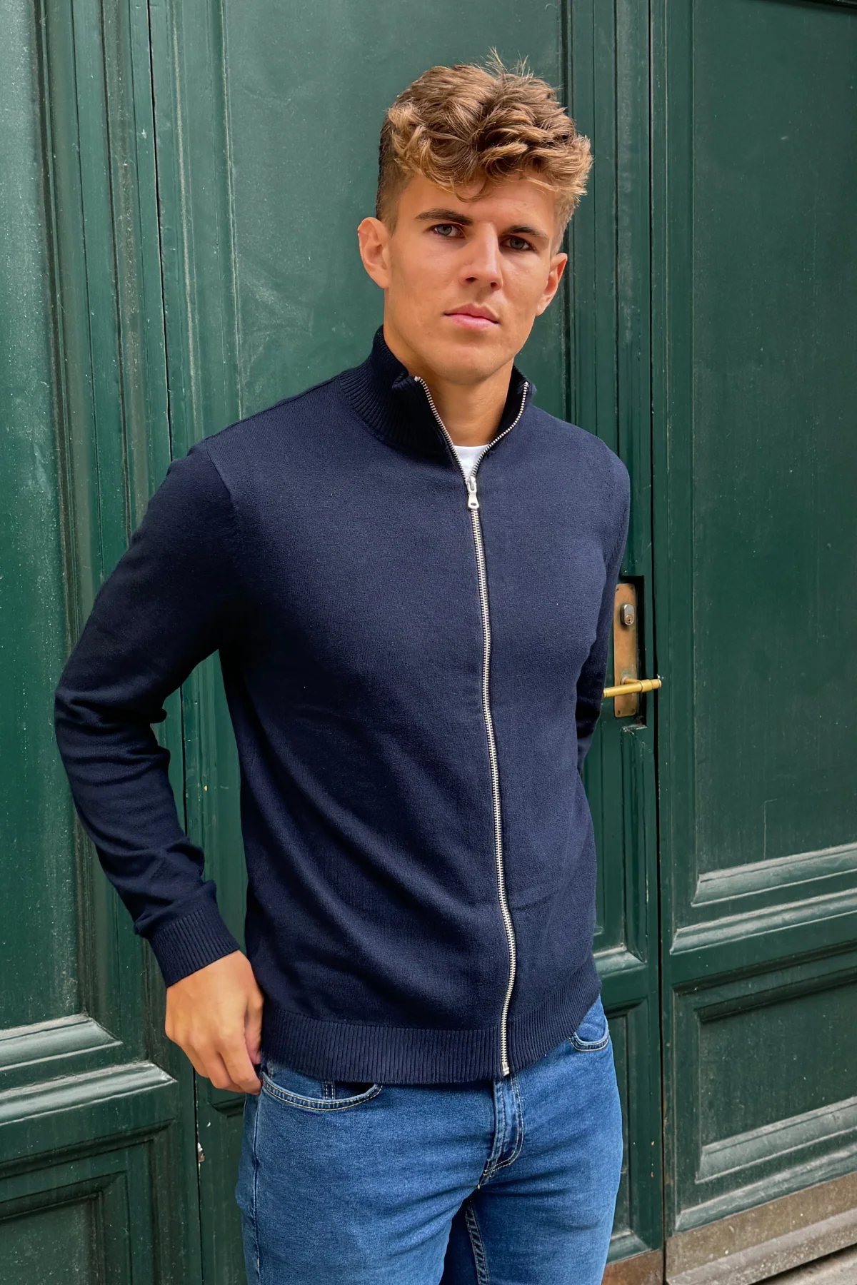 Chaqueta de punto con cremallera – Azul marino para hombre