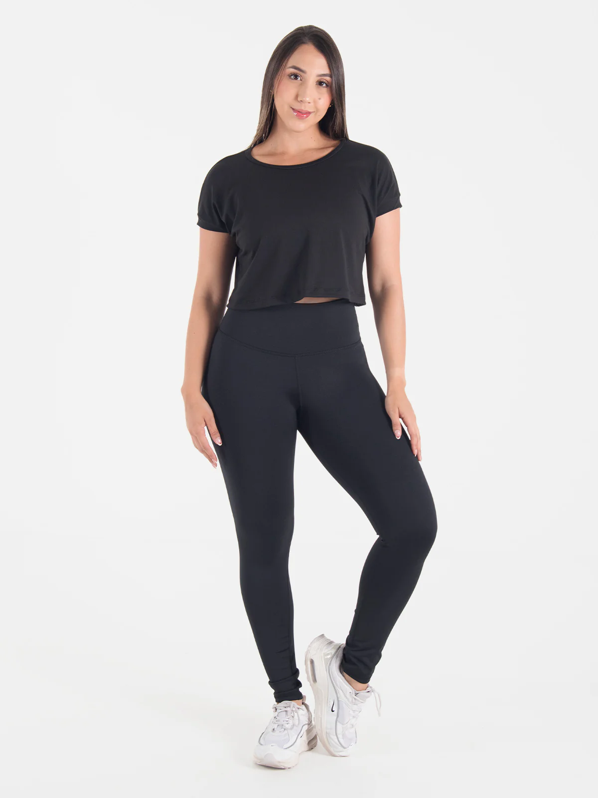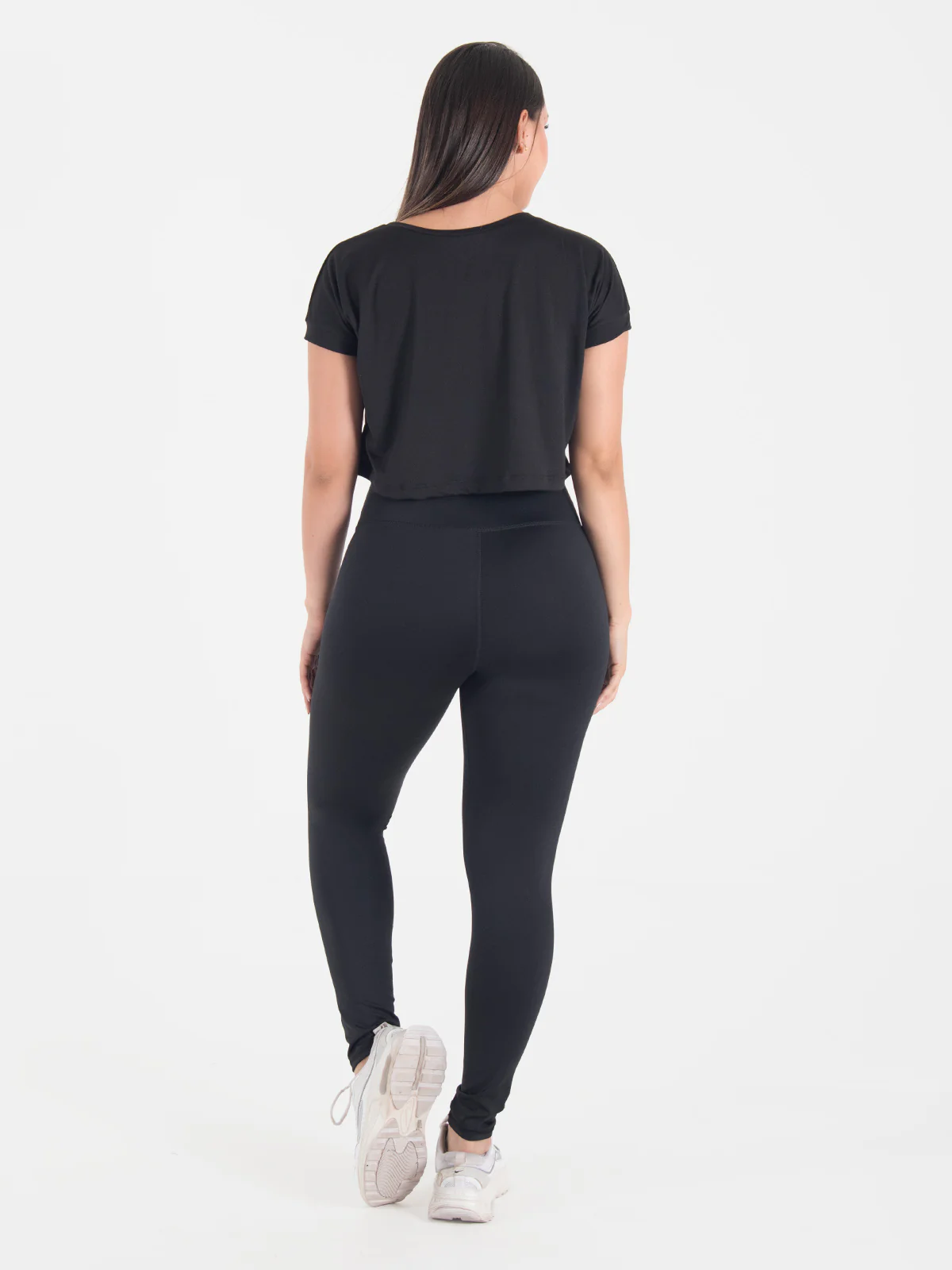 Camiseta y leggins son tela diferente los tonos de negro tienden a no ser iguales.