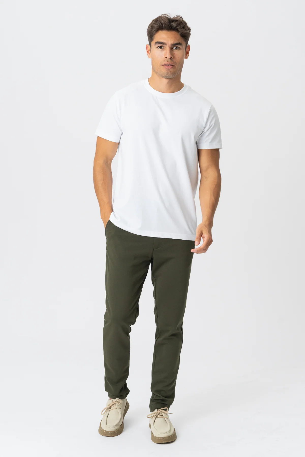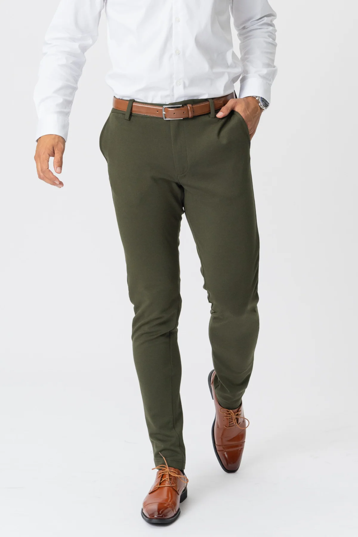 Nuestro Performance Pants se han convertido en un elemento básico para quienes buscan un look elegante y cómodo. Con cierre de cremallera y botón, el tono verde oscuro complementa sin esfuerzo cualquier guardarropa, ofreciendo una opción versátil para varios conjuntos. Diseñados con precisión, estos pants son un testimonio de nuestro compromiso de brindarle lo mejor en conceptos básicos de moda.