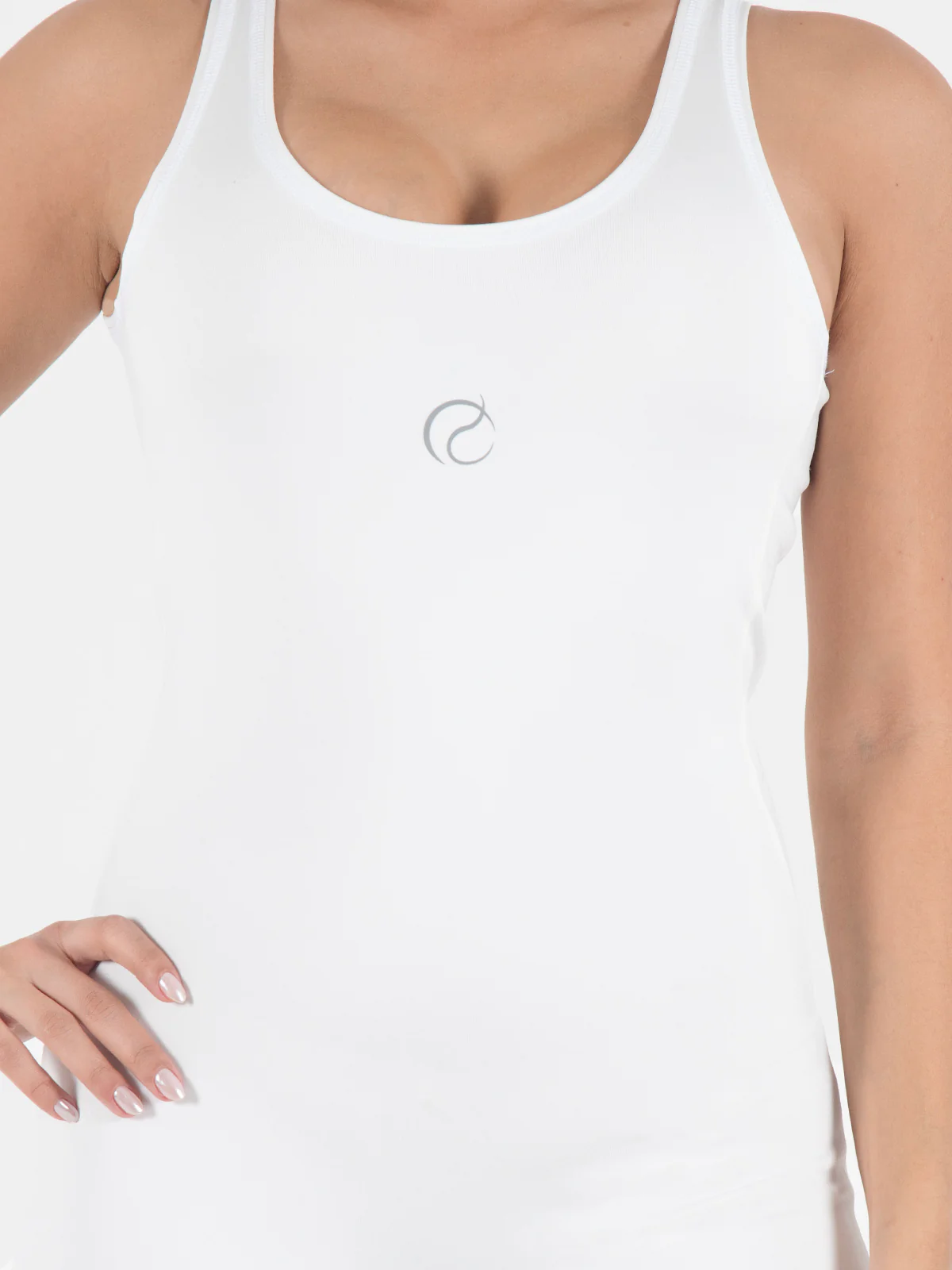 Enterizo: Corto sin mangas (sisa) con escote profundo en la espalda y puntada decorativa en sisas, escote y botas.