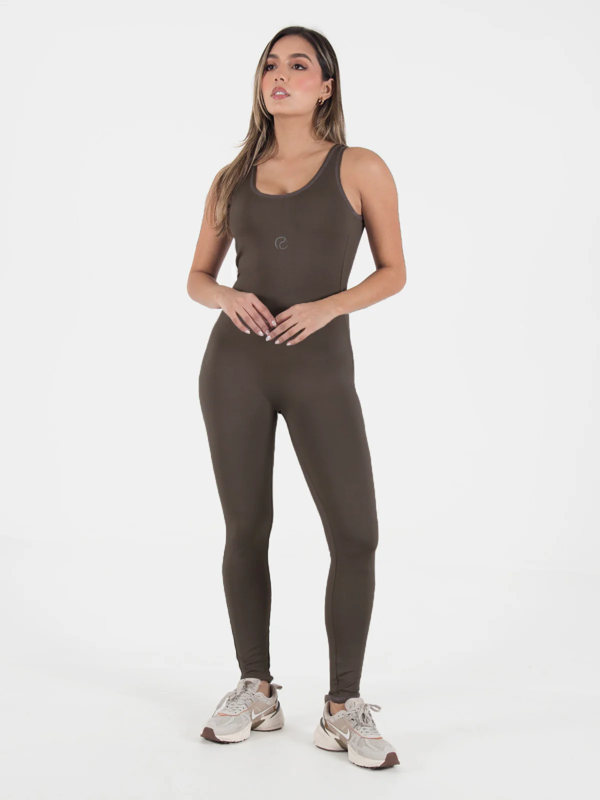 Enterizo: Largo, con mangas sisa, escote profundo en la espalda y puntada decorativa en sisas, escotes y botas, aportando un acabado moderno y detallado.