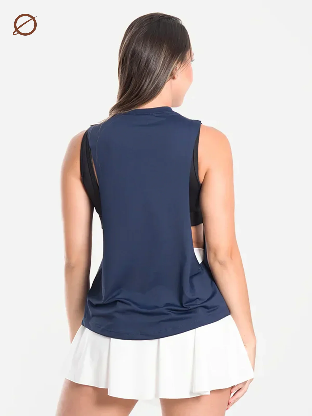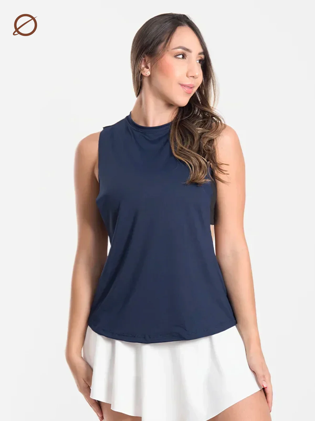 Esqueleto deportivo: relaxed fit, sisa amplia, cuello redondo y largo abajo de la cintura. Composición