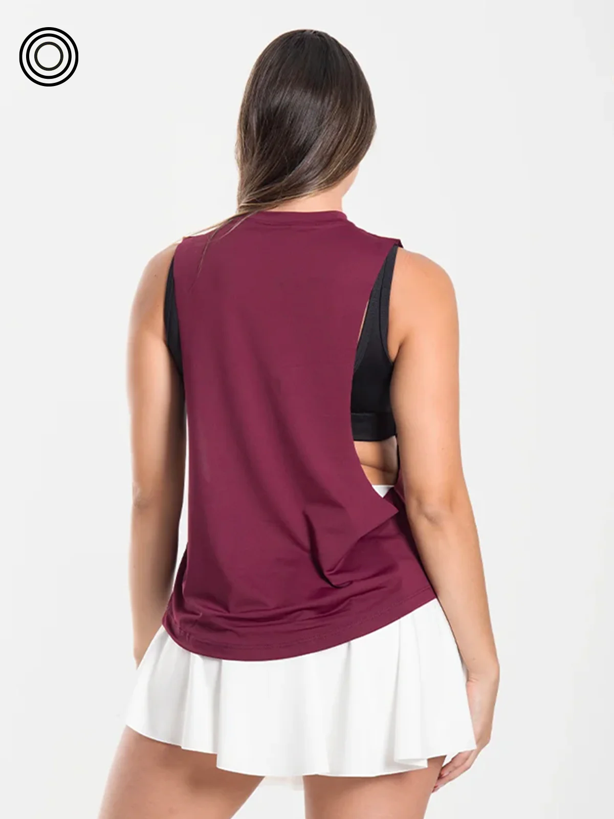 Esqueleto deportivo, relaxed fit, sisa amplia, cuello redondo y largo abajo de la cintura.
