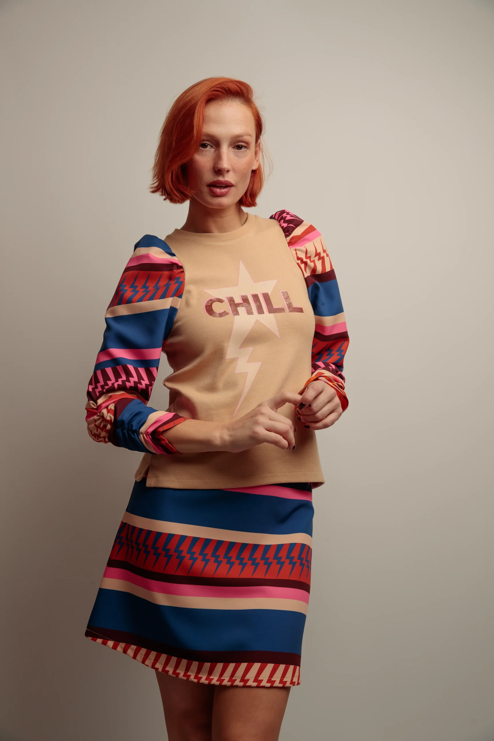 Falda corta confeccionada en tejido denim negro con acabado lavado y patrón de estrellas en relieve. Presenta diseño de corte evasé con bajo rematado en volante para un efecto ligero y favorecedor. La estructura está compuesta por paneles fruncidos en horizontal que aportan textura y movimiento. Cintura fija sin cinturilla visible y cierre lateral invisible para un acabado limpio. El tejido cuenta con zonas deshilachadas que refuerzan su estilo desenfadado y urbano. Combina a la perfección con camisetas gráficas o cazadoras vaqueras de la misma colección.