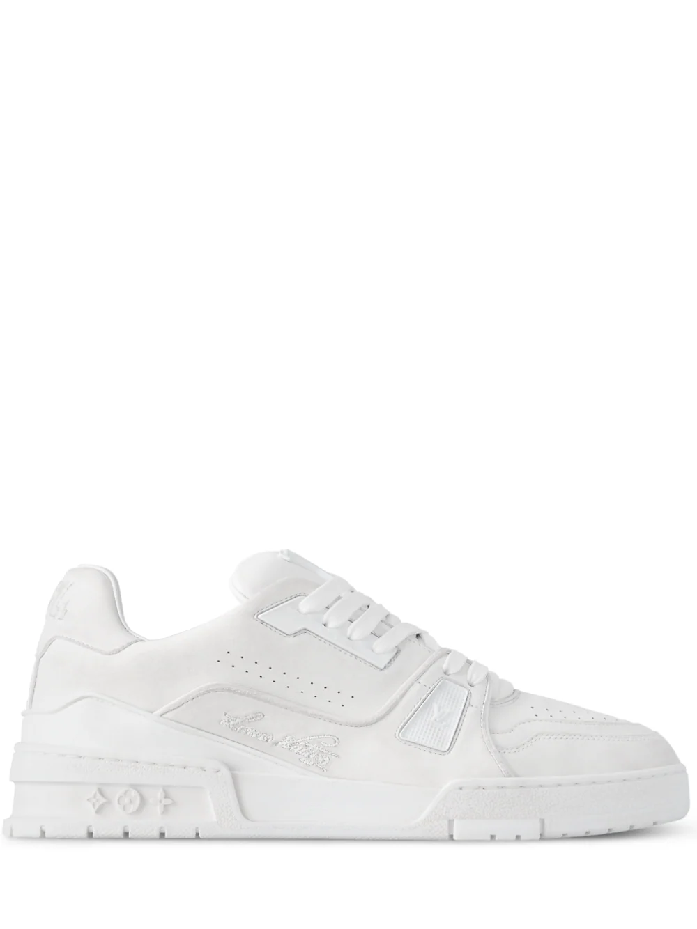 Los clásicos tenis LV Trainer de la colección de hombre de Louis Vuitton se reinterpretan por primera vez para mujer. Este modelo creado por Virgil Abloh está confeccionado en suave piel de becerro y tejido denim Monograma y se inspira en el calzado vintage de basquetbol. El diseño se completa con diversos detalles emblemáticos como unas iniciales LV en la lengüeta y en el lateral así como flores Monograma en la suela.