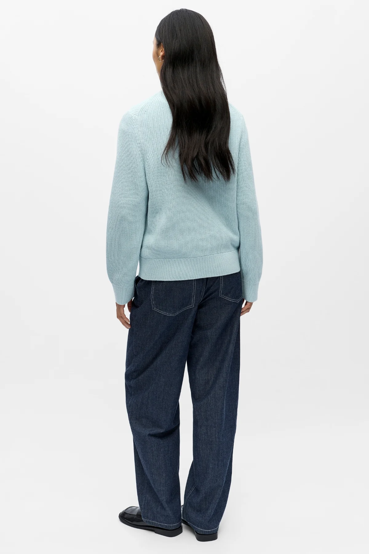 El diseño atemporal y el sereno color Winter Sky hacen de este suéter un verdadero héroe de guardarropa. Su belleza reside en su sencillez y adaptabilidad. Ya sea que esté buscando un look para un día de trabajo ajetreado o un fin de semana relajado, el suéter de punto Flo se adapta perfectamente. Para un conjunto elegante y listo para la oficina, combínalo con trajes clásicos Pants y mocasines. Crea un look informal y elegante combinándolo con tus jeans y botines favoritos, o colócalo sobre un vestido lencero para salir por la noche. Su versatilidad está limitada sólo por tu imaginación.